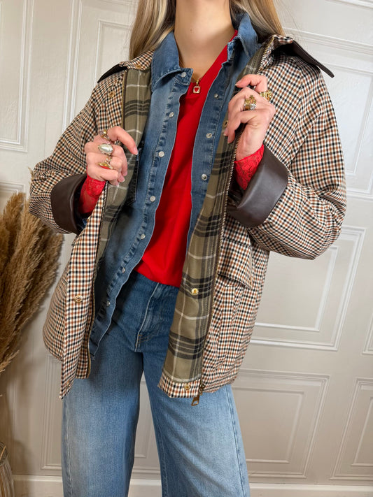 Giacca field quadretti - Vicolo Giacca cotone a quadretti. Interno in tartan. Fit dritto oversize. Dettaglio di colletto...