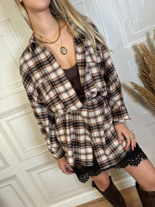 Abito chemisier check con lingerie - Tensione Abito chemisier in fantasia Check in flanella sui toni...