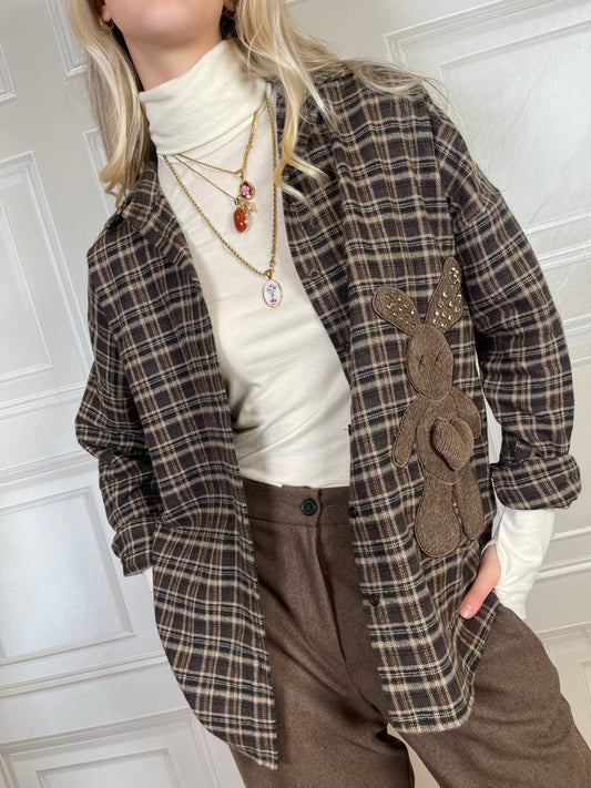 Camicia quadri coniglietto - SusyMix Camicia a quadri in flanella sui toni del moro e...