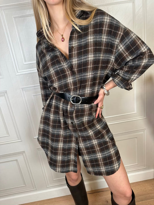 Abito check flanella - SusyMix Abito a fantasia check in flanella con chiusura con bottoncini e cintura in...