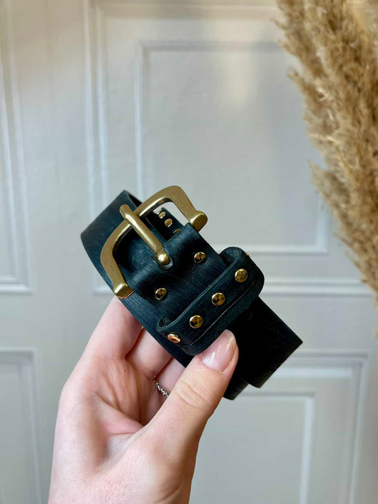 Cintura con strass - VicoloCintura in cuoio con fibbia e parte finale con borchie.Lunghezza 107...