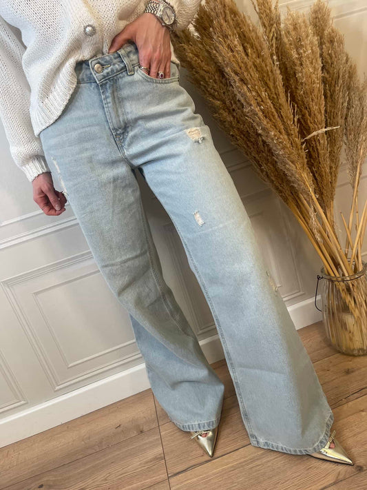Jeans Tokyo abrasioni - HaveoneJeans Tokio color denim chiaro con piccole rotture.Modello wide leg a gamba morbida, vita...