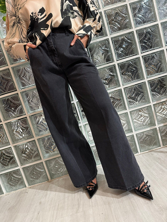 Jeans Emma palazzo - Kontatto Jeans lavaggio grigio/nero. Modello palazzo sigaretta, 5  tasche, chiusura con bottone e zip....