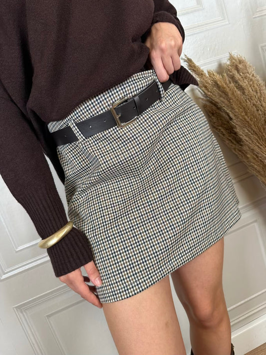 Minigonna portafoglio - Philia Loft Gonna a quadretti portafoglio nelle tonalità del beige marrone, chiusura laterale...