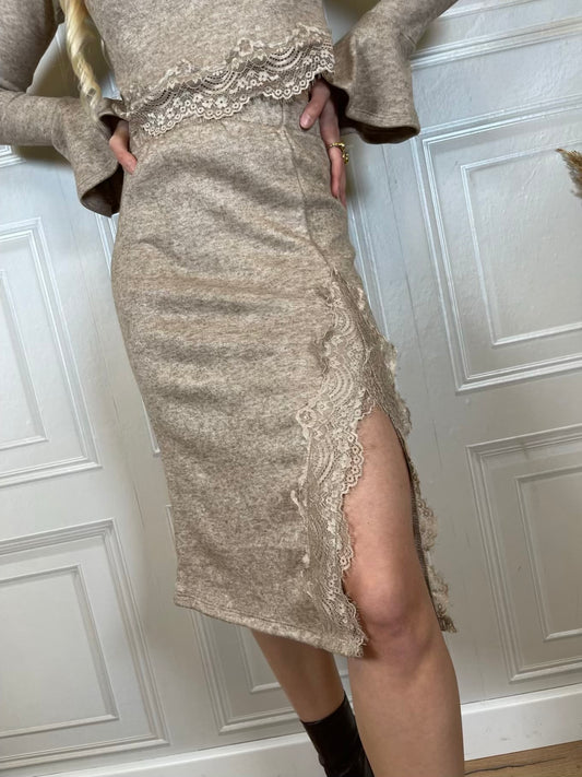 Gonna midi maglia pizzo - Haveone Gonna midi con spacco laterale con inserto in pizzo....