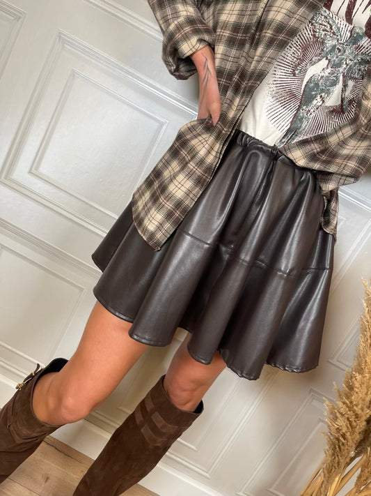 Minigonna ecopelle ruova - HaveoneMinigonna ecopelle con cuciture. Modello a ruota con elastico in vita. In foto...