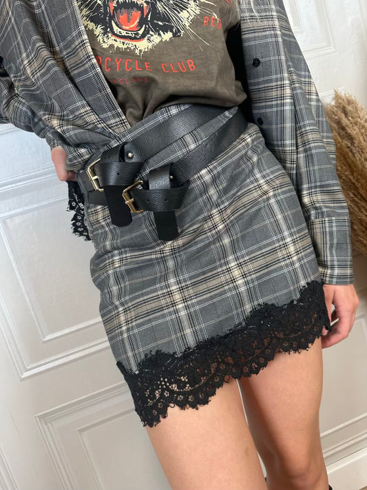 Gonna mini check doppia cintura - HaveoneGonna mini fantasia check con doppia cintura e chiusura cerniera sul...