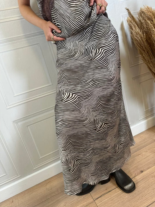 Gonna lunga raso fantasia zebrata - HaveoneGonna lunga in raso a sbieco in fantasia zebrata.  Elastico...