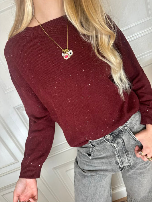 Maglia girocollo micro paillettes - HaveOne Maglia girocollo con micropaillettes. Modello leggermente morbido con con...