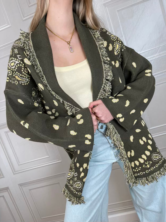 Cardigan Alanui bandana verde - Tensione In Cardigan sui toni del verde oliva e...
