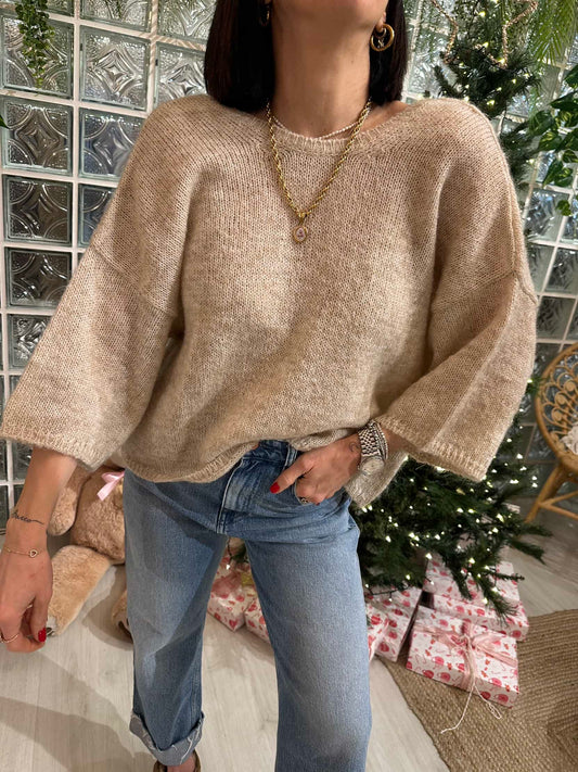Pull scollo schiena - KontattoDescrizionePull scollo schiena con dettaglio gioiello.Modello a scatoletta con manica 3/4.Lunghezza...