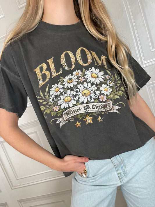 T-shirt bloom vintage - Vicolo T-shirt girocollo in cotone con stampa di margherite. Modello man fit....