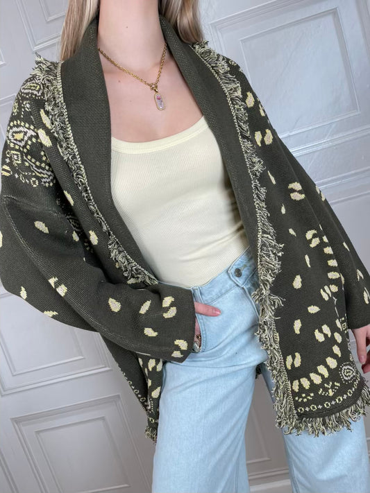 Cardigan Alanui bandana verde - Tensione In Cardigan sui toni del verde oliva e...