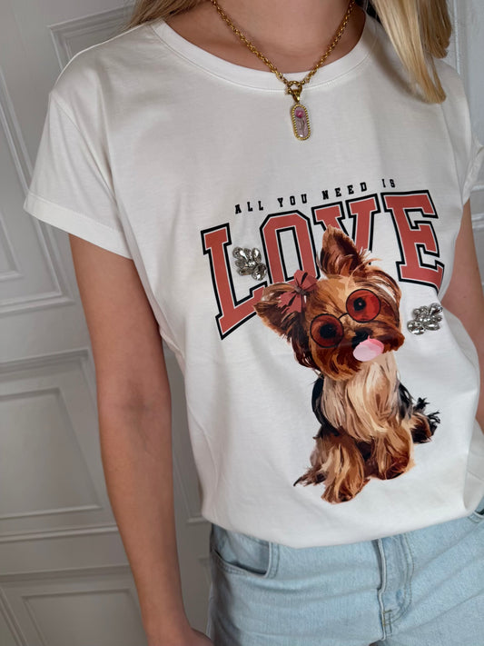 T-shirt all you need is love - Vicolo T-shirt girocollo in cotone con stampa e ricami...