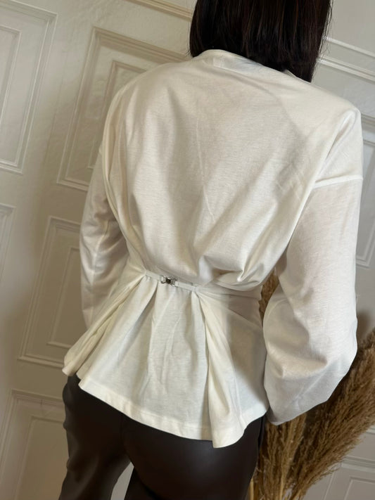 Maglia manica corolla - HaveOne Maglia a costine con collo a V bordato in pizzo...