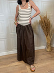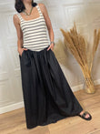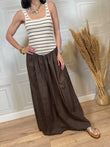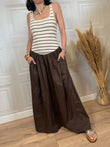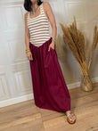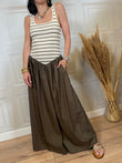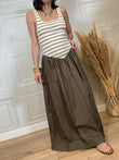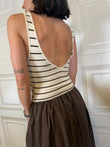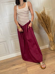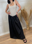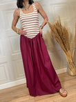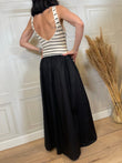 Vestito rigato Vicolo. Modello a palloncino lungo con canotta a costine con scollo profondo sul retro con schiena scoperta. Gonna ampia lunga a palloncino in cotone.