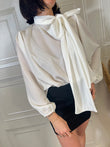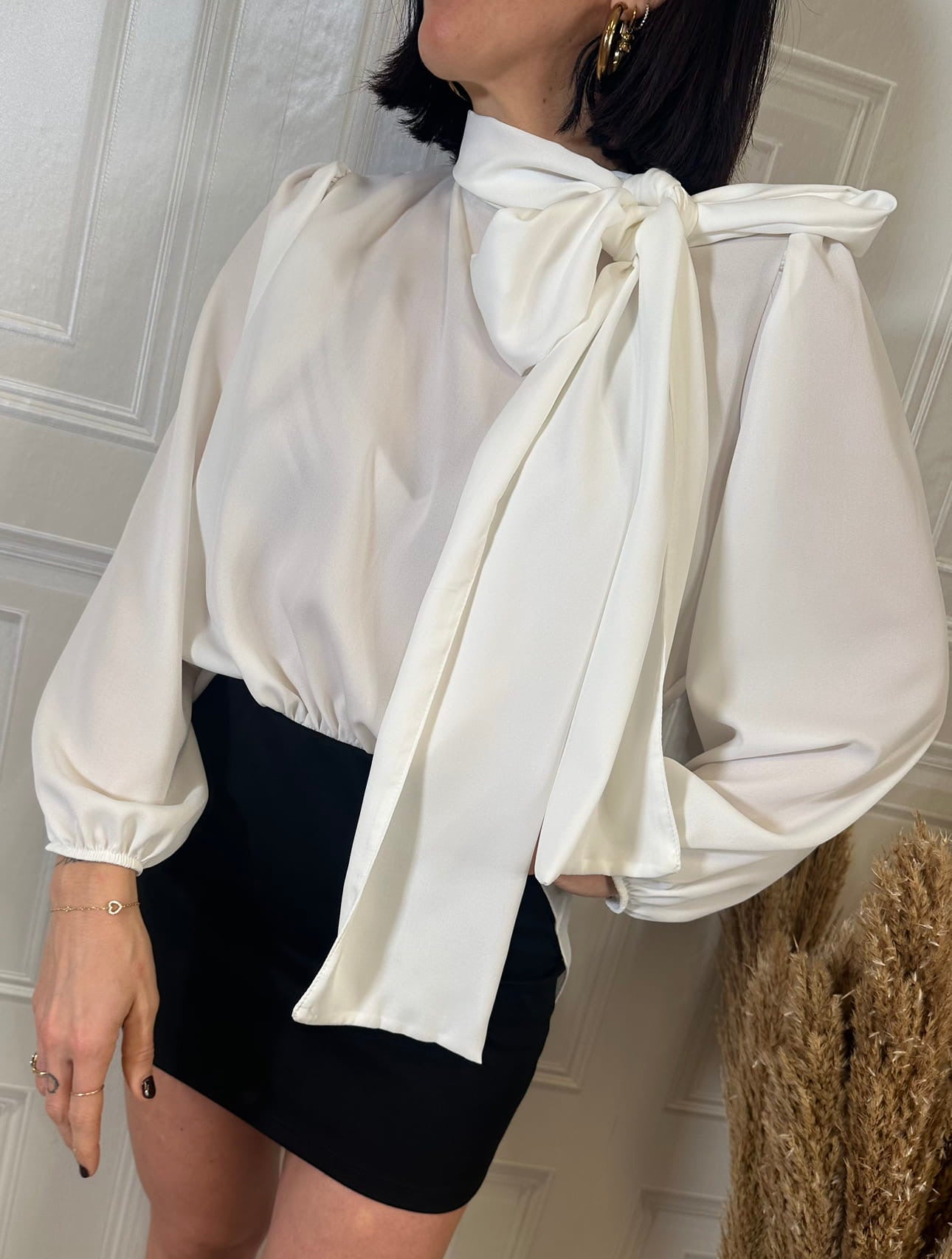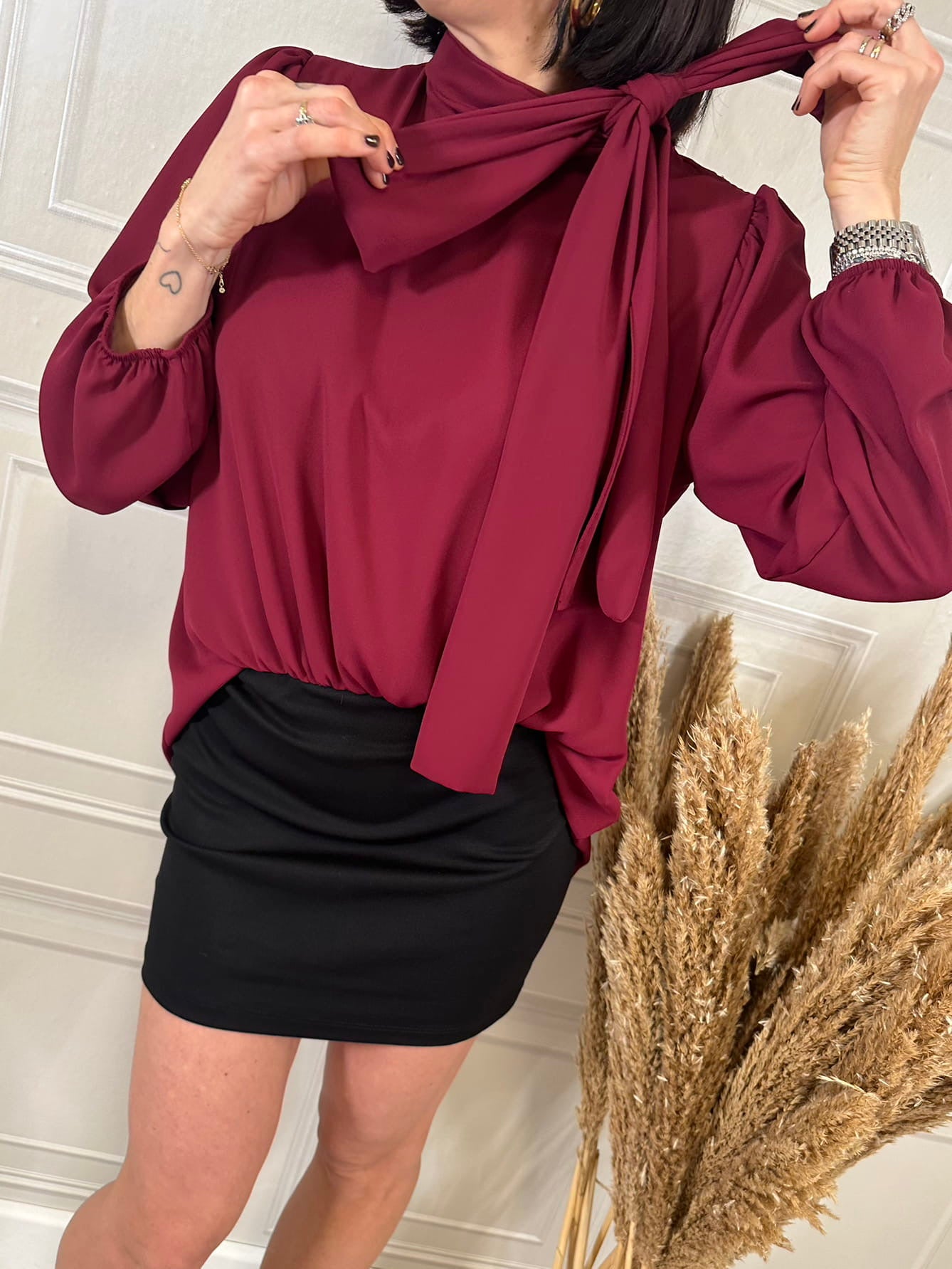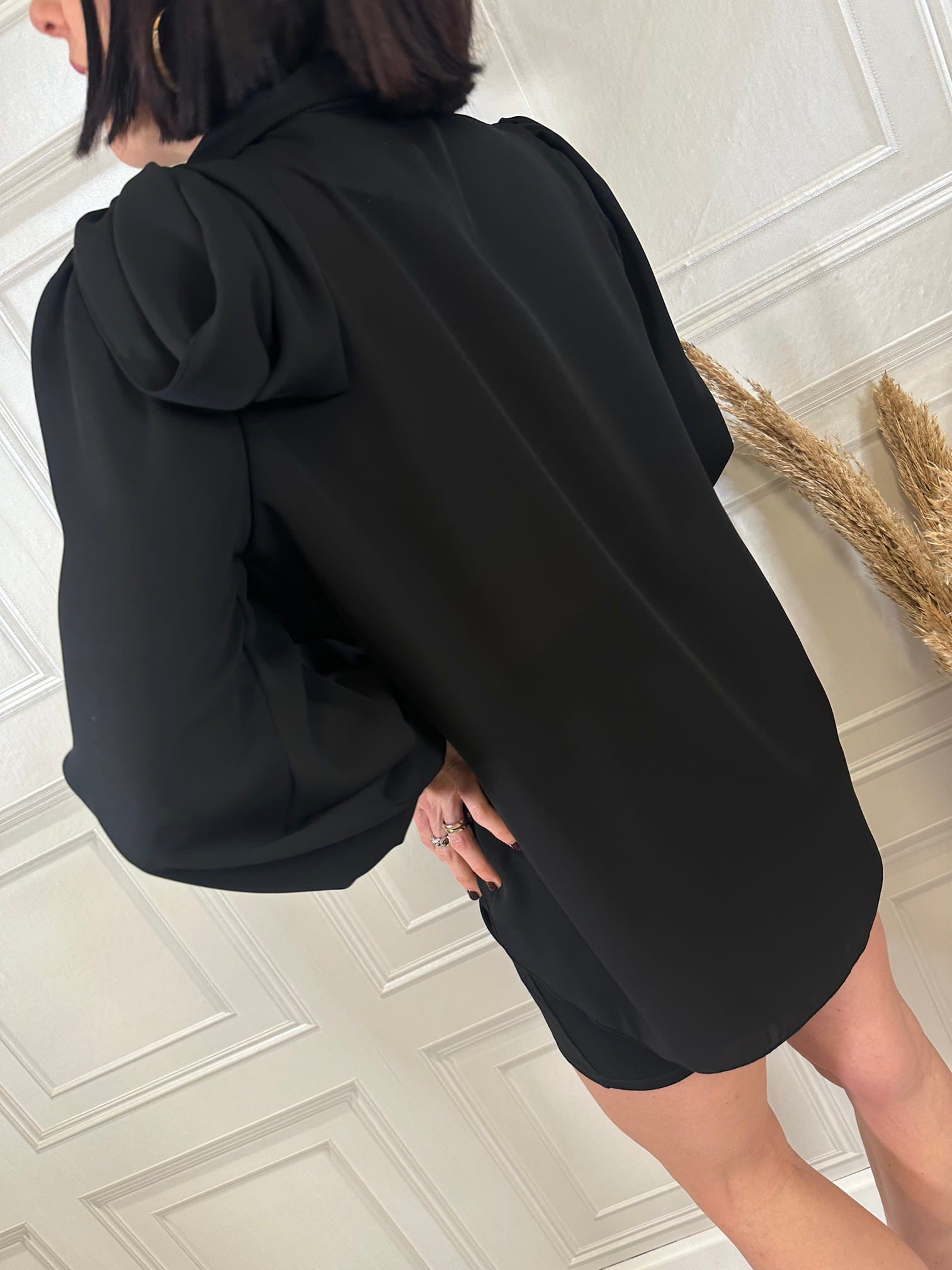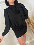 Abito mini a blusa. Modello classico con chiusura con bottoncino e fiocco laterale e gonna aderente in nero. In foto taglia S, vestibilità regolare.