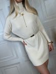 Abito/maxi Pull dolcevita in maglia a costine. Modello elasticizzato con manica raglan. Taglia unica. Vestibilità regolare.