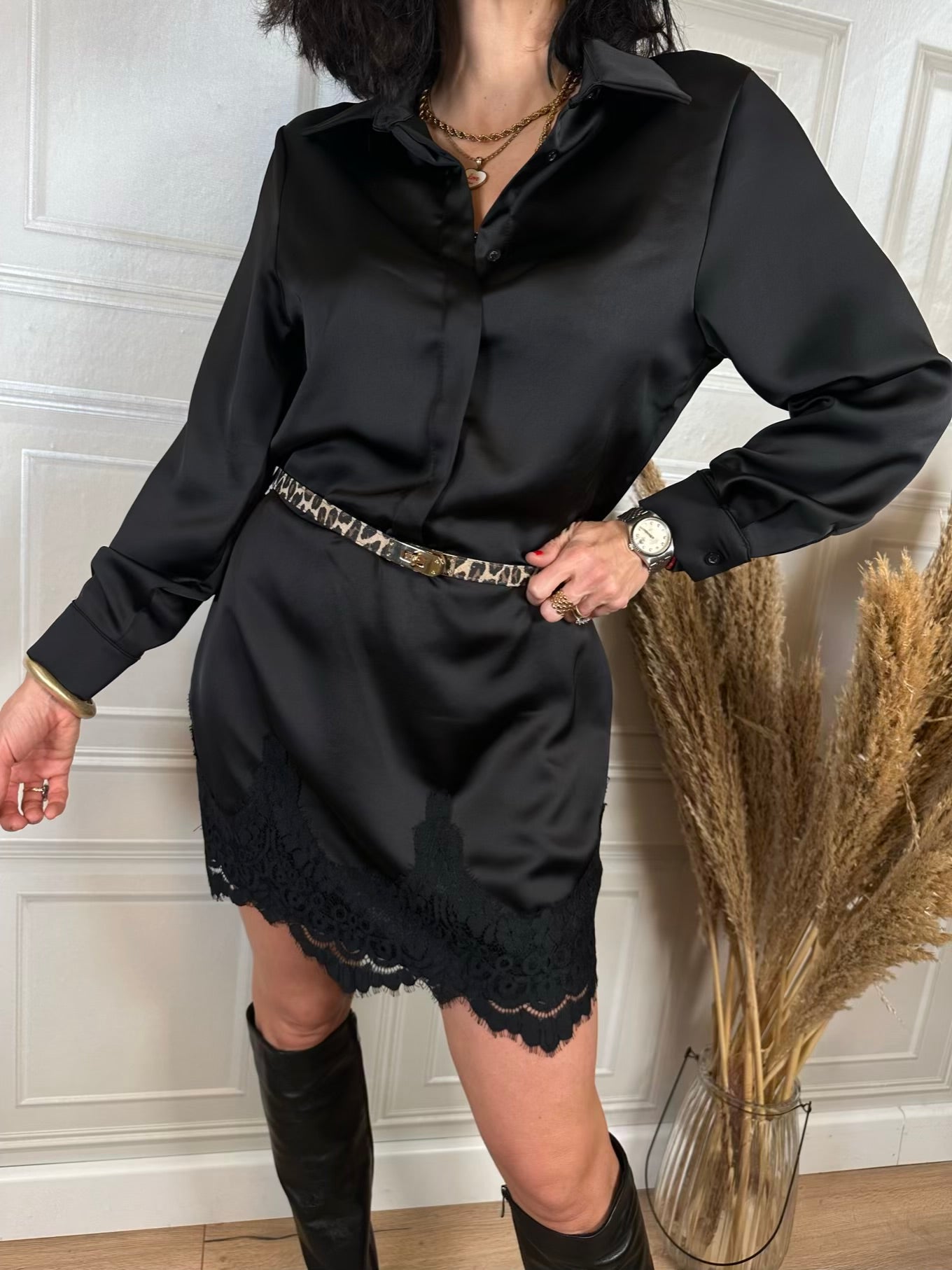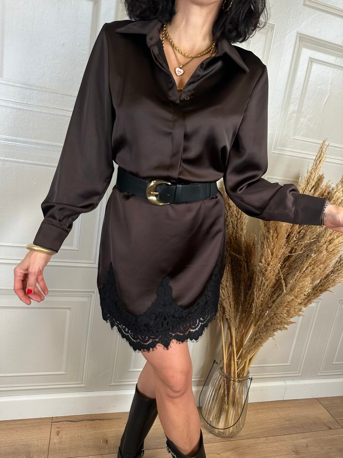 Abito satin bordo pizzo - Haveone