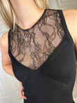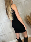 Abito in maglia elasticizzato. Modello con scollo a V ed inserto in pizzo su scollo.