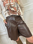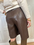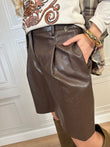 Modello con pinces sul fronte. Chiusura con zip e bottone e tasche laterali.