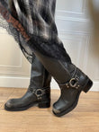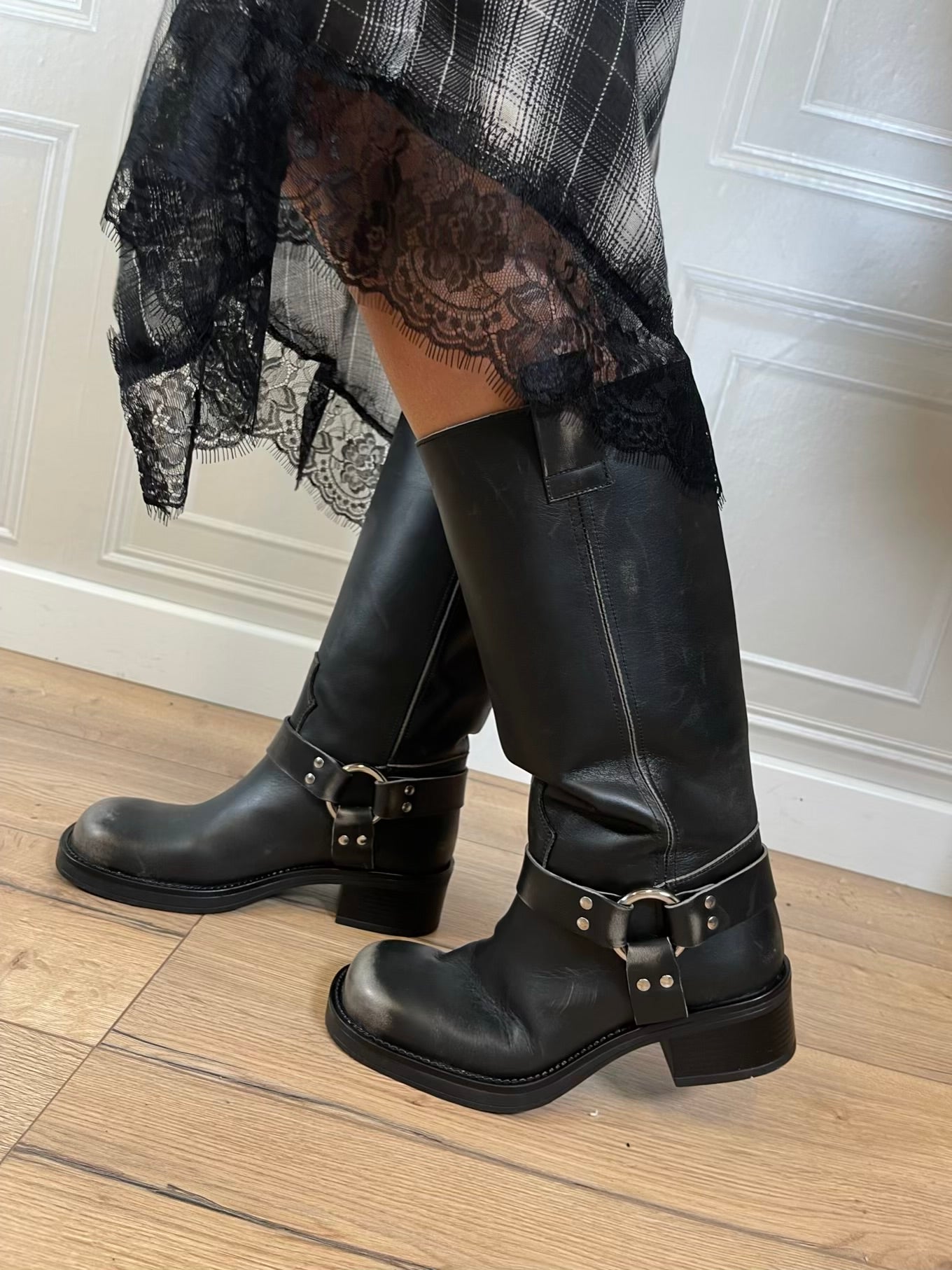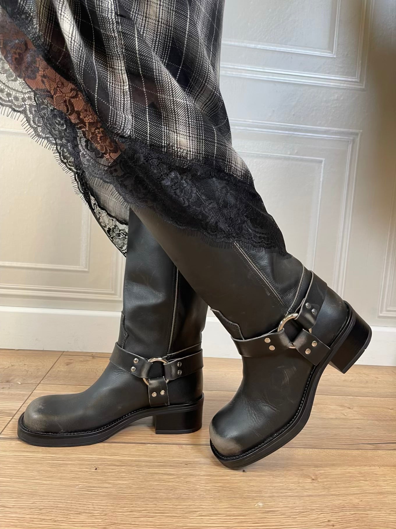 Biker in pelle con effetto invecchiato sui toni del grigio