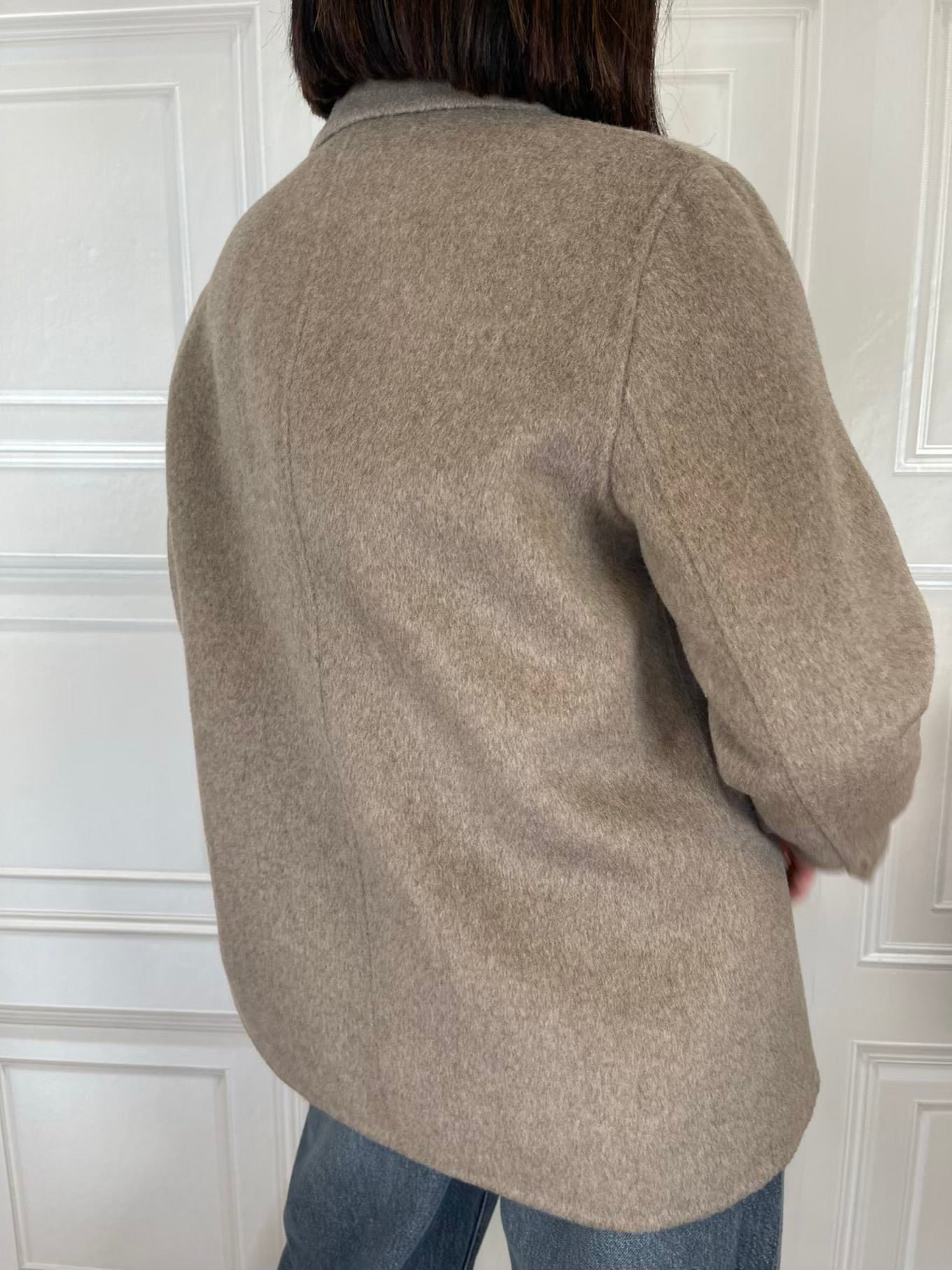 Cappotto hand Made a doppiopetto, modello fatto a blazer. Chiusura con bottoni sul davanti.