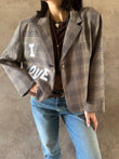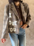 Blazer modello fit cropped con chiusura monopetto ad un bottone. Dettaglio di ricamo frontale I love you. In foto taglia S, vestibilità regolare.