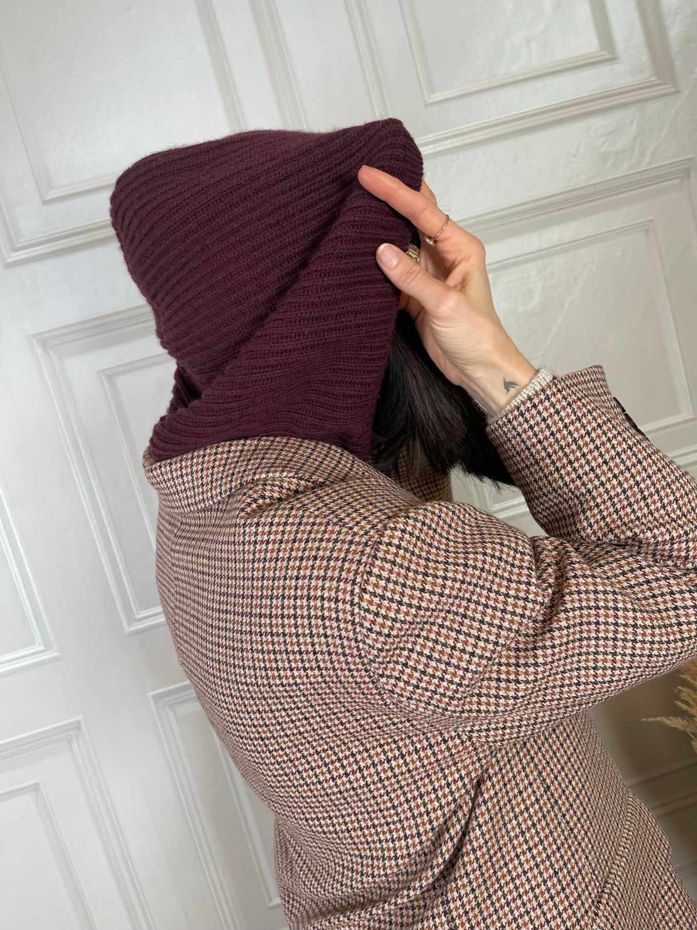 Giacca cappotto pied de poule cappuccio bordeaux - Vicolo