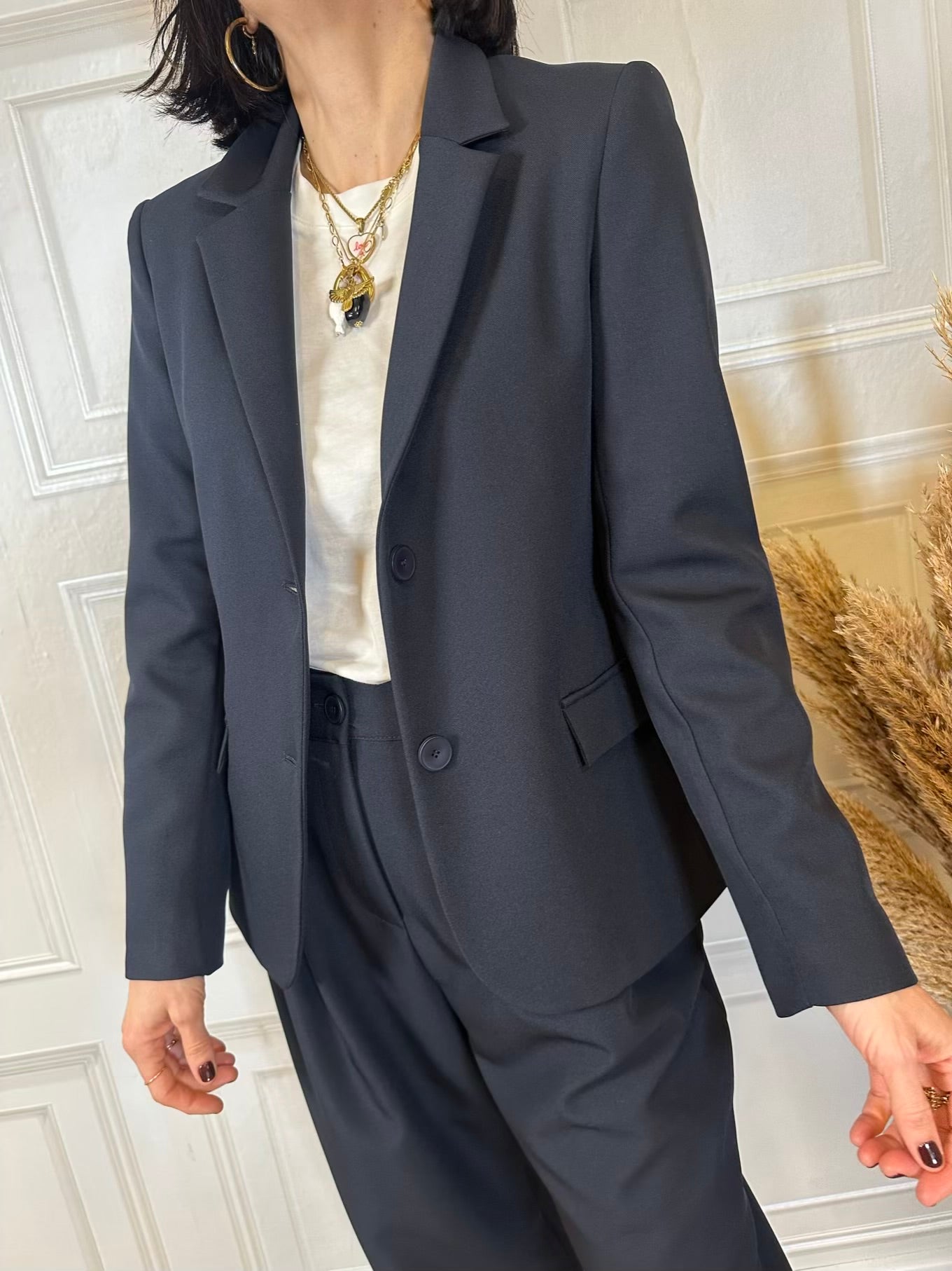 Blazer monopetto con fit leggermente sfiancato. Taschine frontali con patta finte. Vestibilità regolare. In foto taglia S.