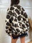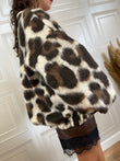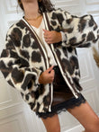 Bomber a cardigan maculato sui toni del moro e del burro.