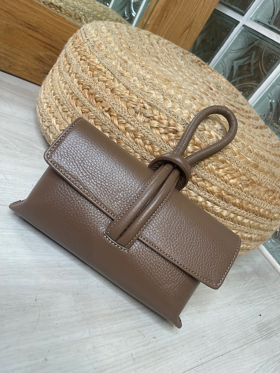 Possibilità di portarla a mano o con la tracolla inclusa in pelle tono su tono
