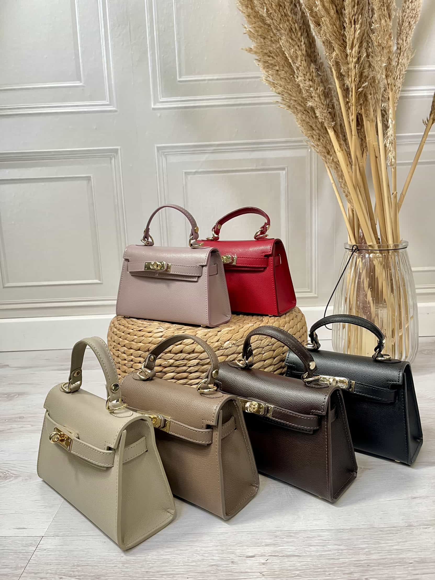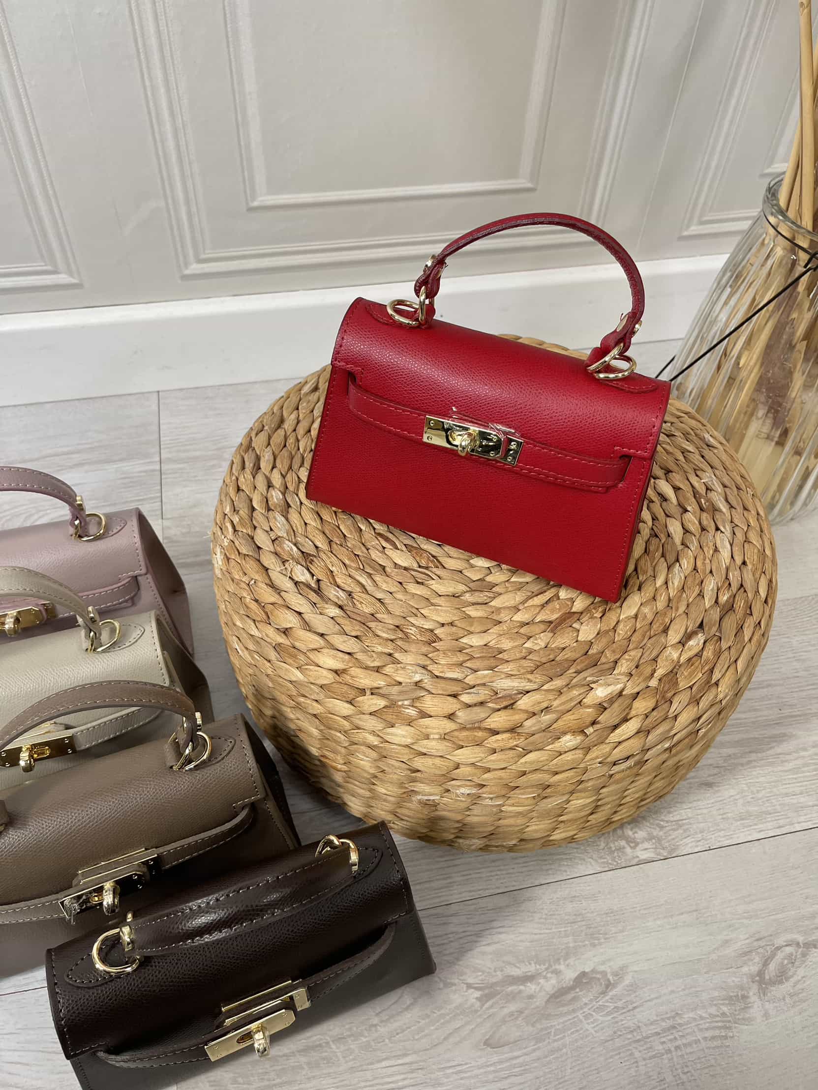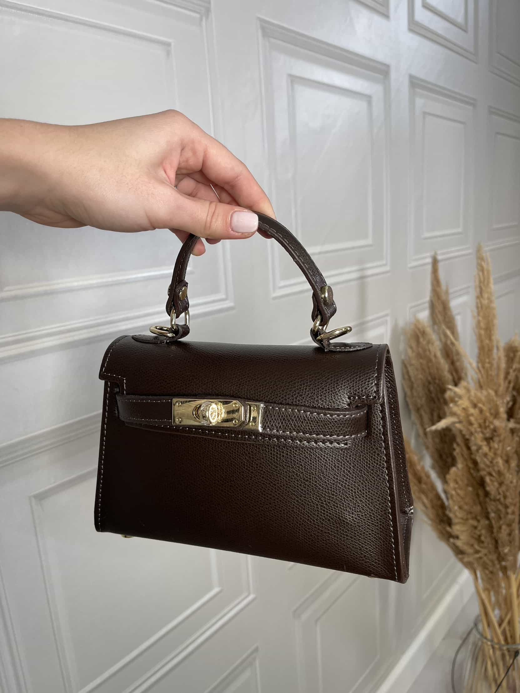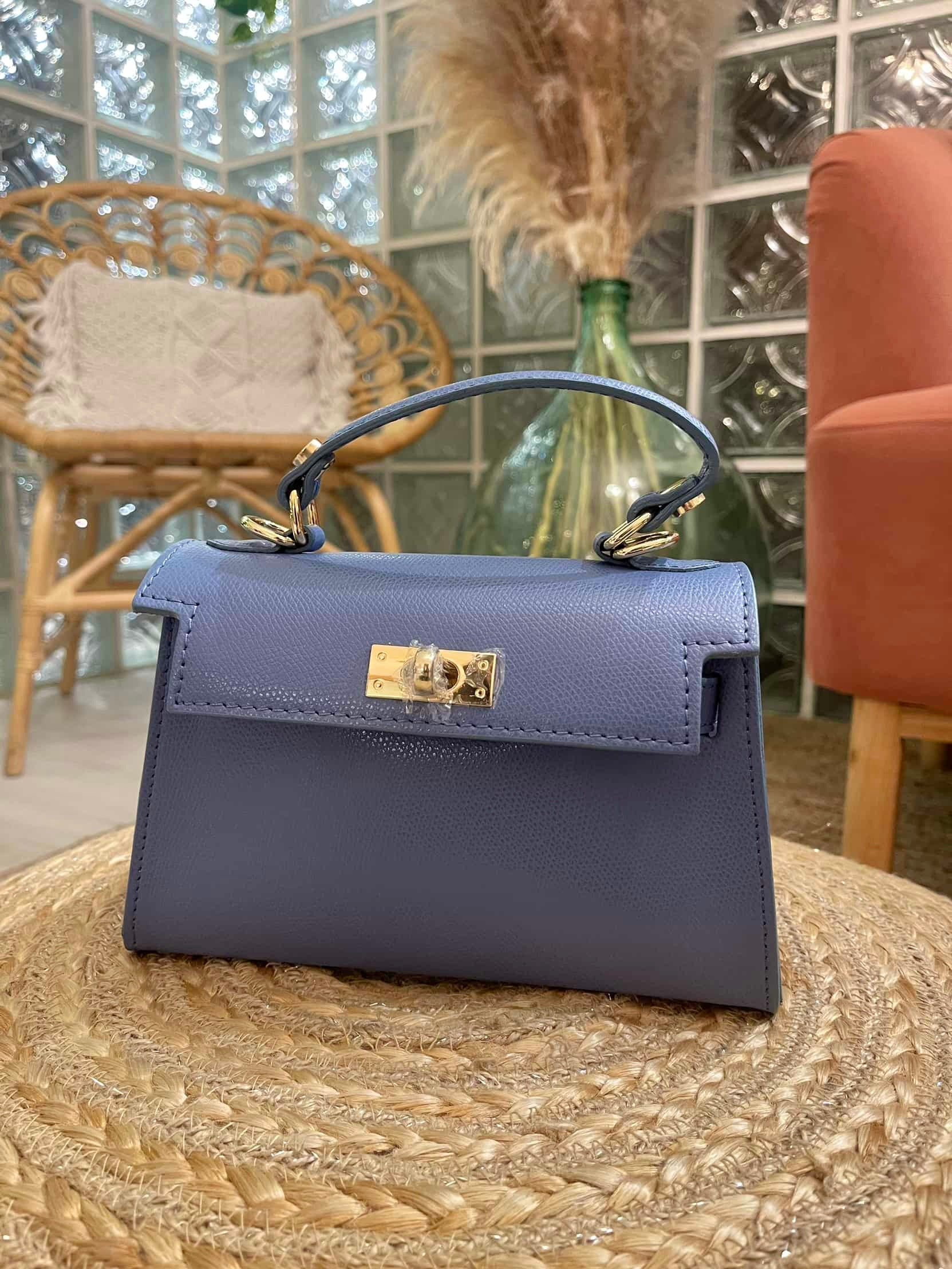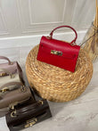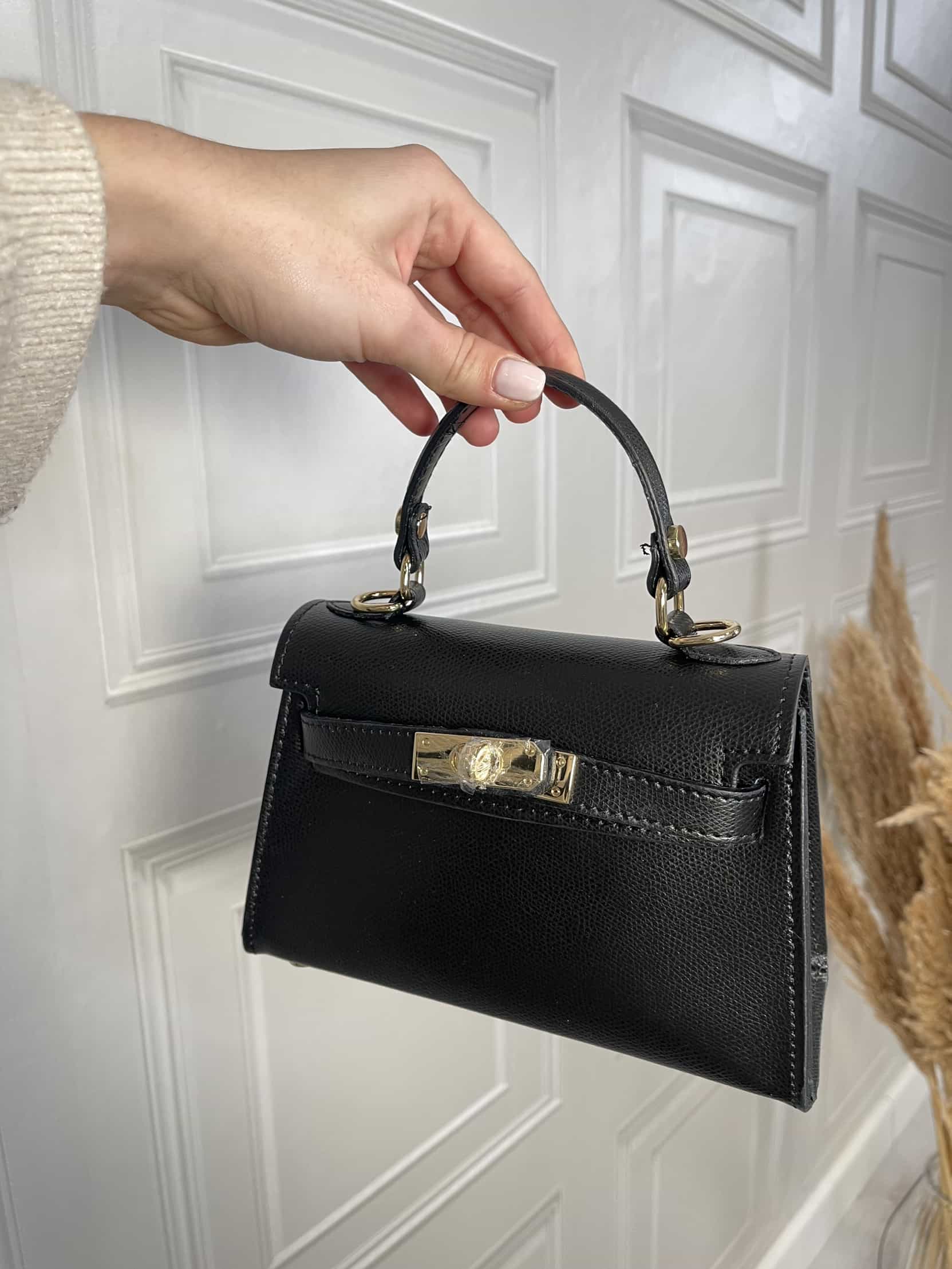 Taschina con zip interna. Dotata di tracollina in pelle con ganci.