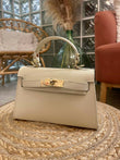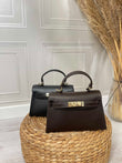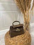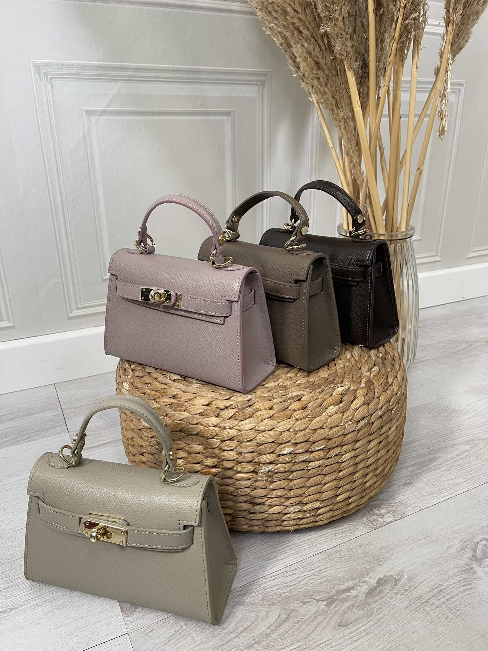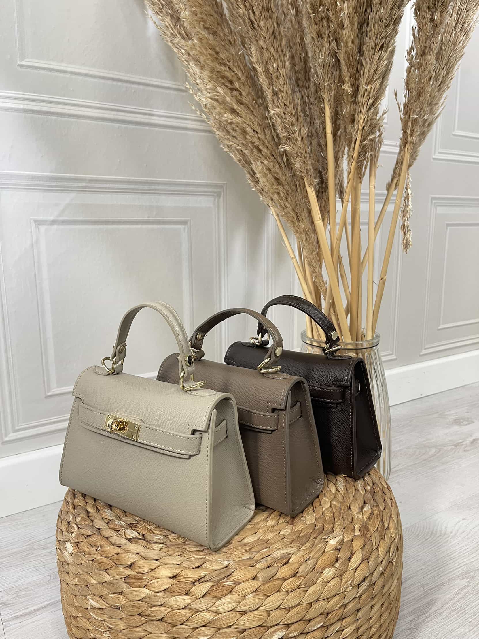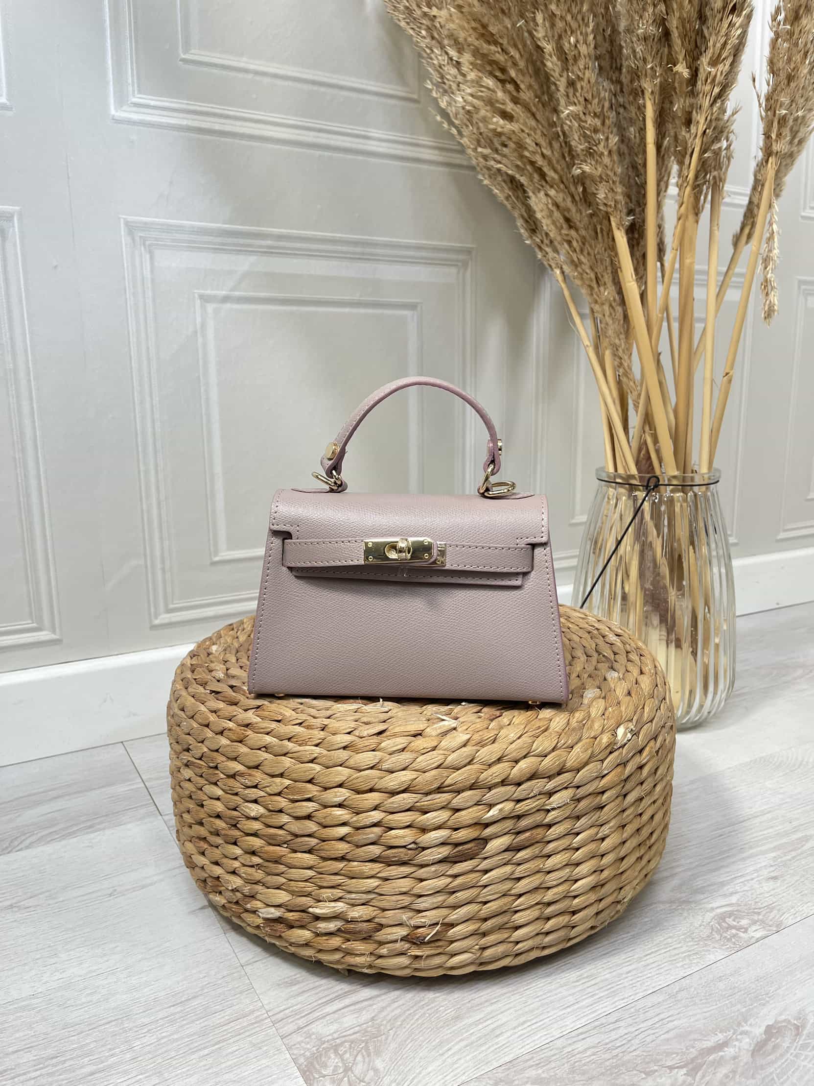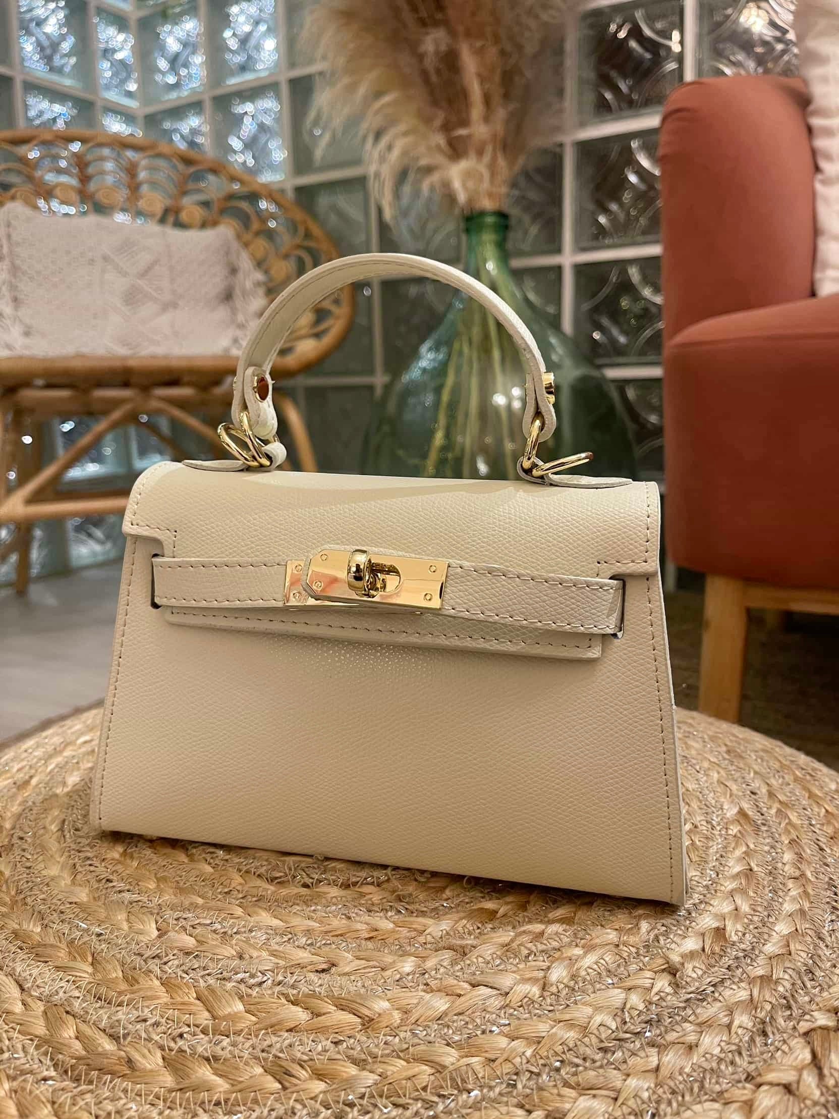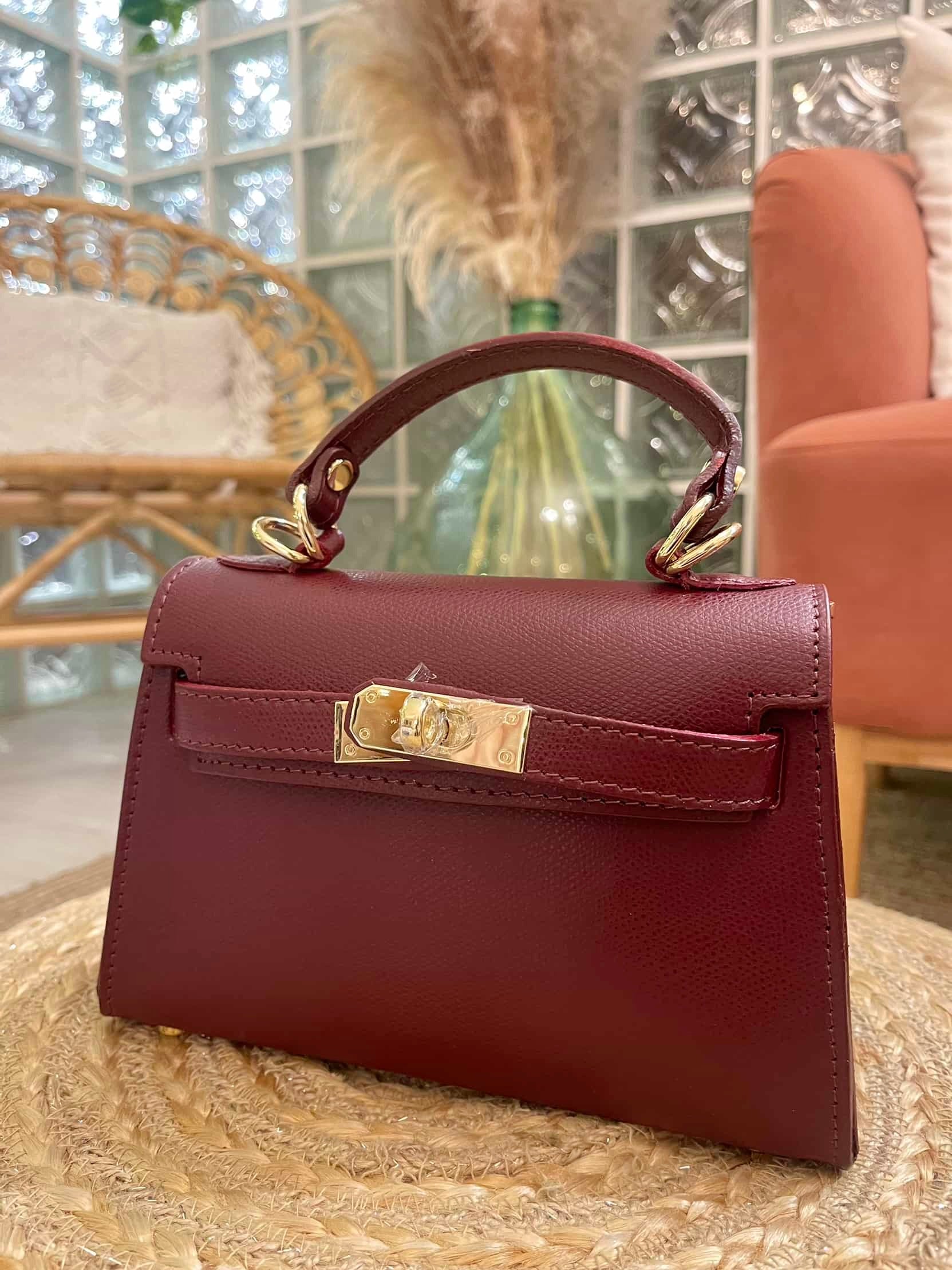 Taschina con zip interna. Dotata di tracollina in pelle con ganci.