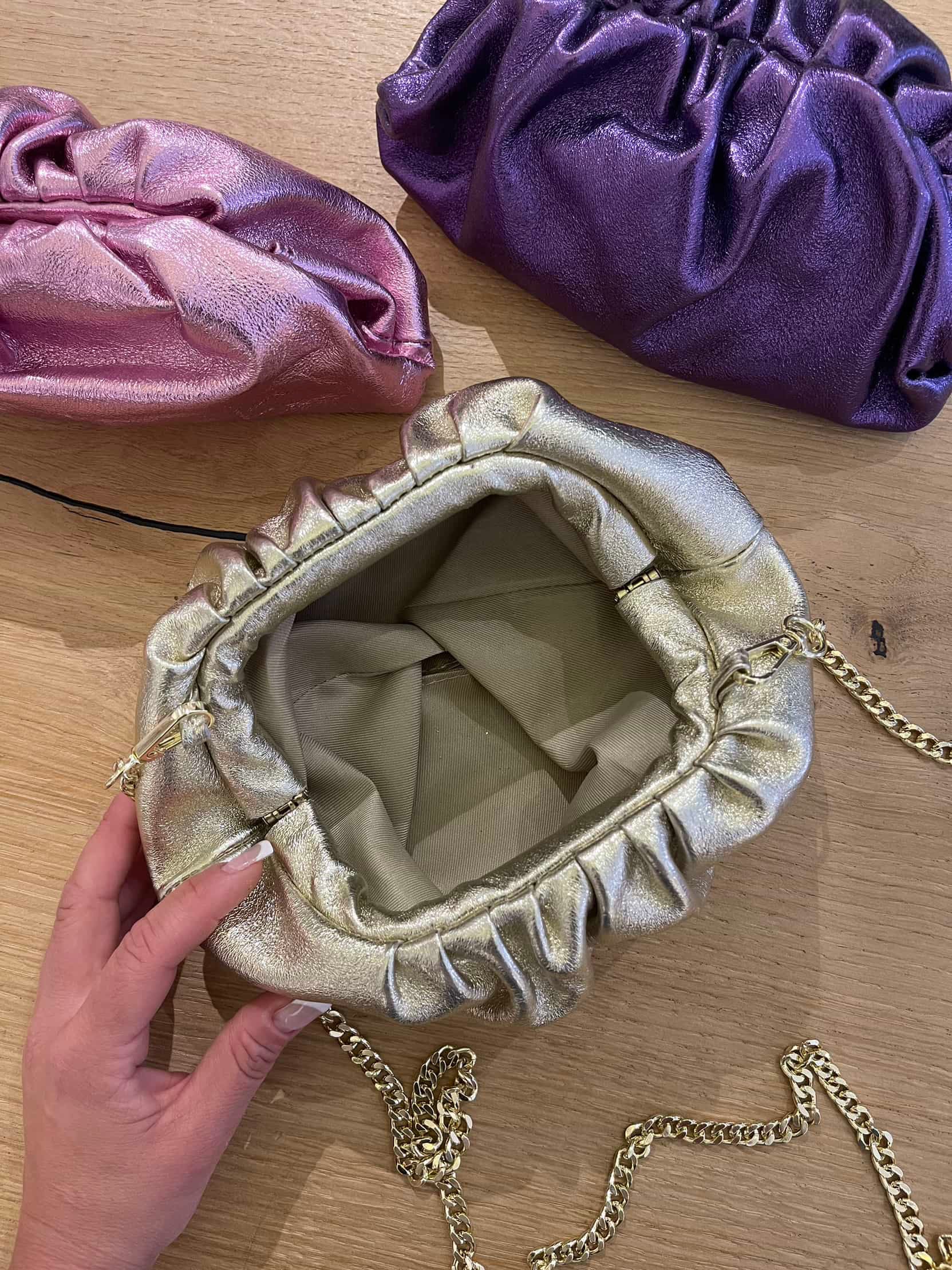 Borsa nuvoletta piccola modello pouch in pelle morbida.
