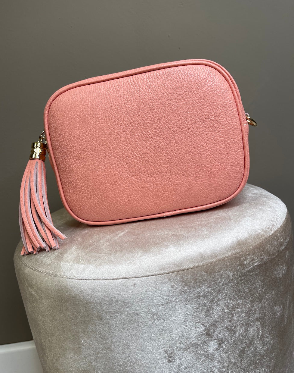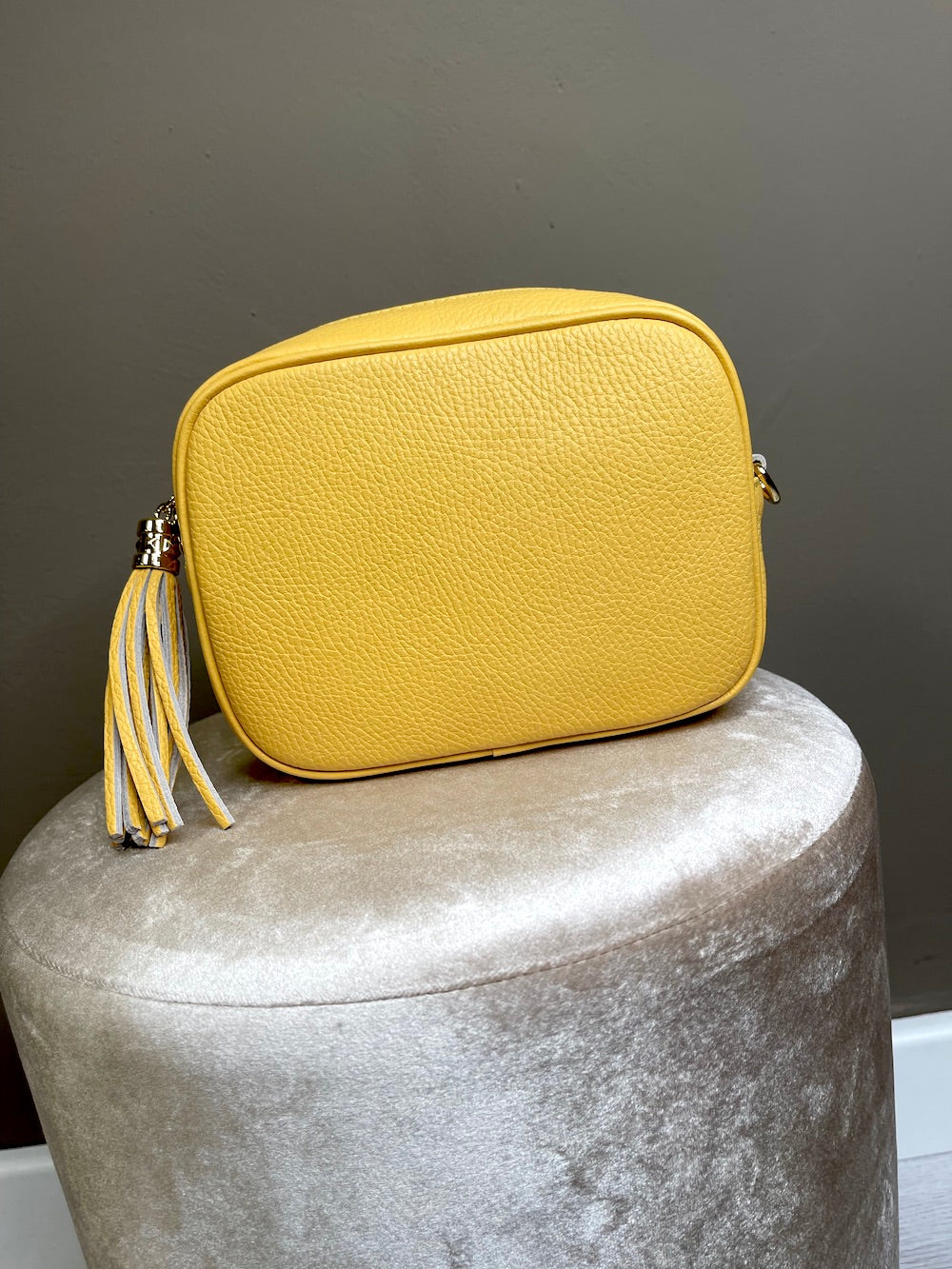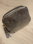 Chiusura con zip e nappina in pelle.