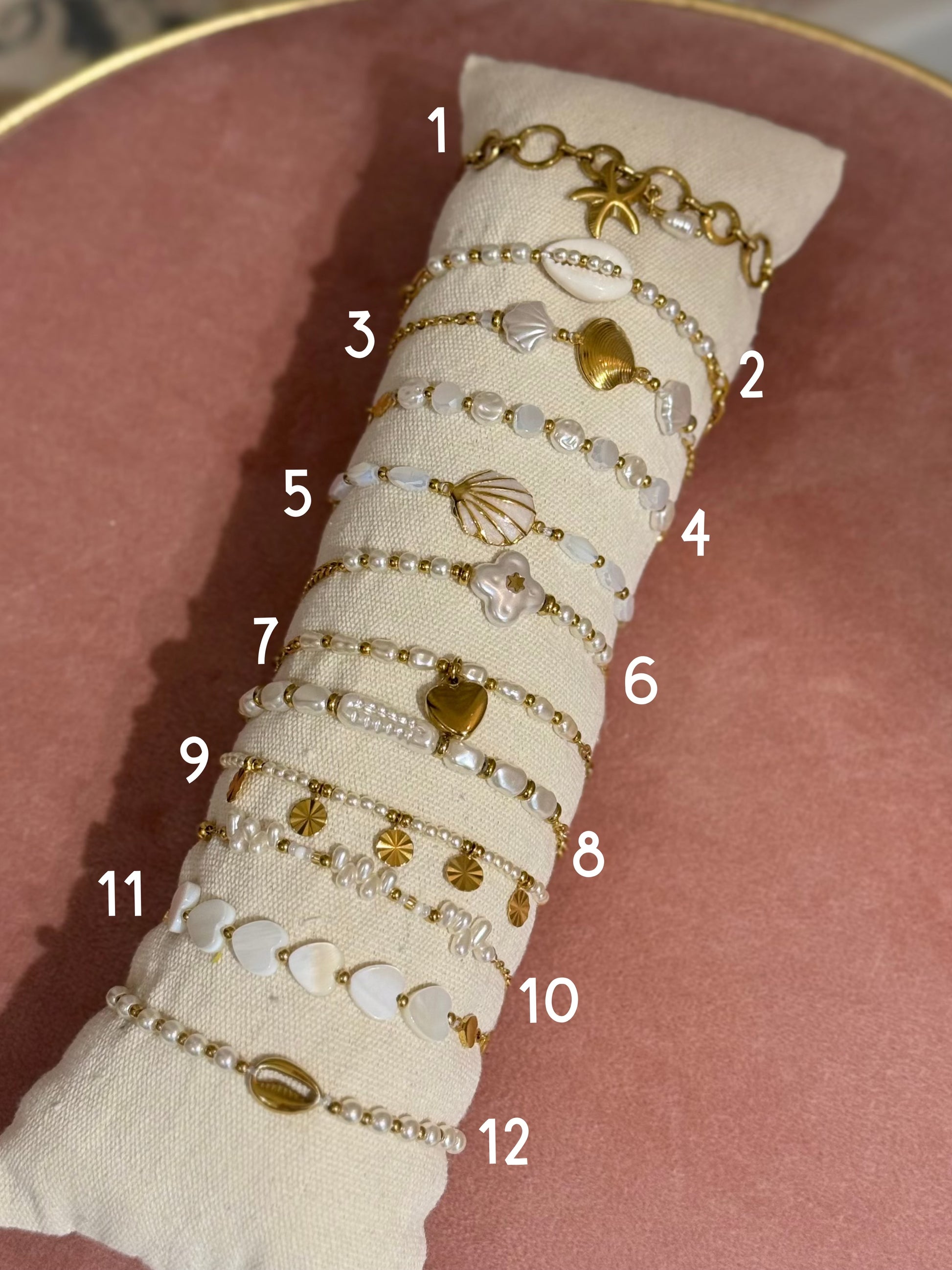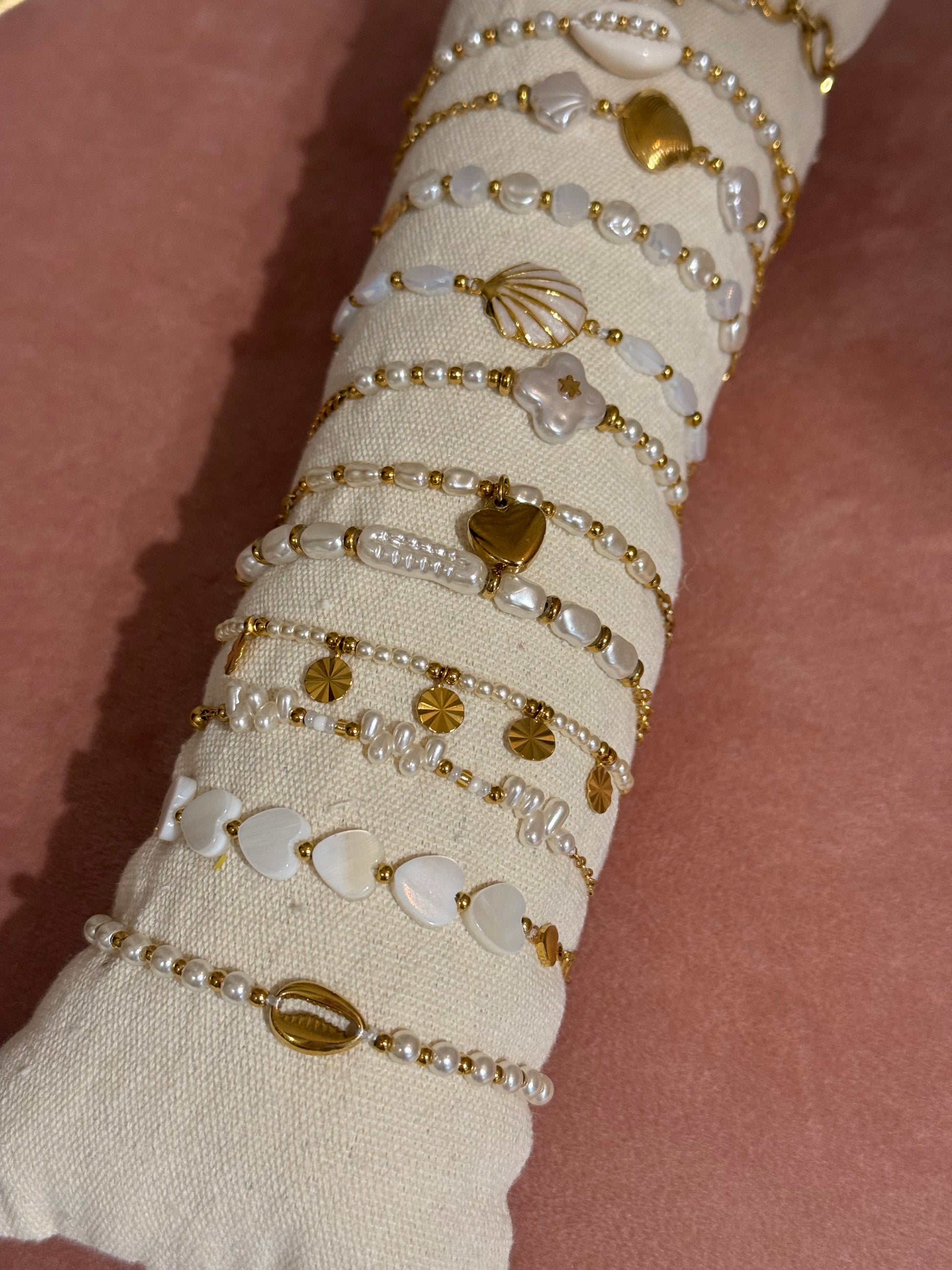 Braccialetto con perle. Lunghezza 17cm+4cm catenella