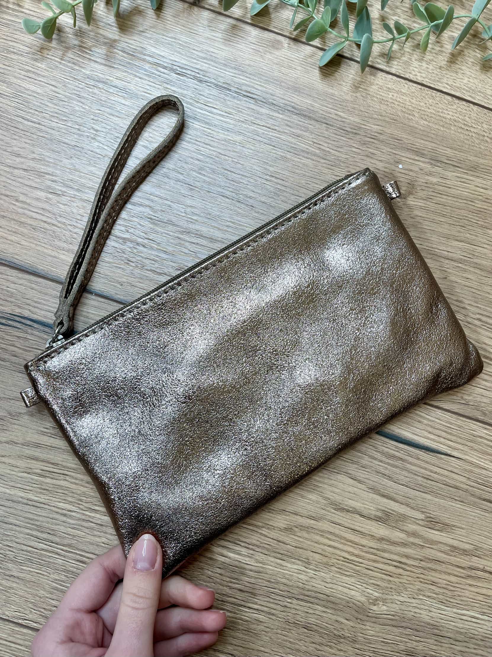 Chiusura con zip, possibilità di portarla sia a mano che a tracolla.