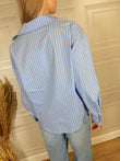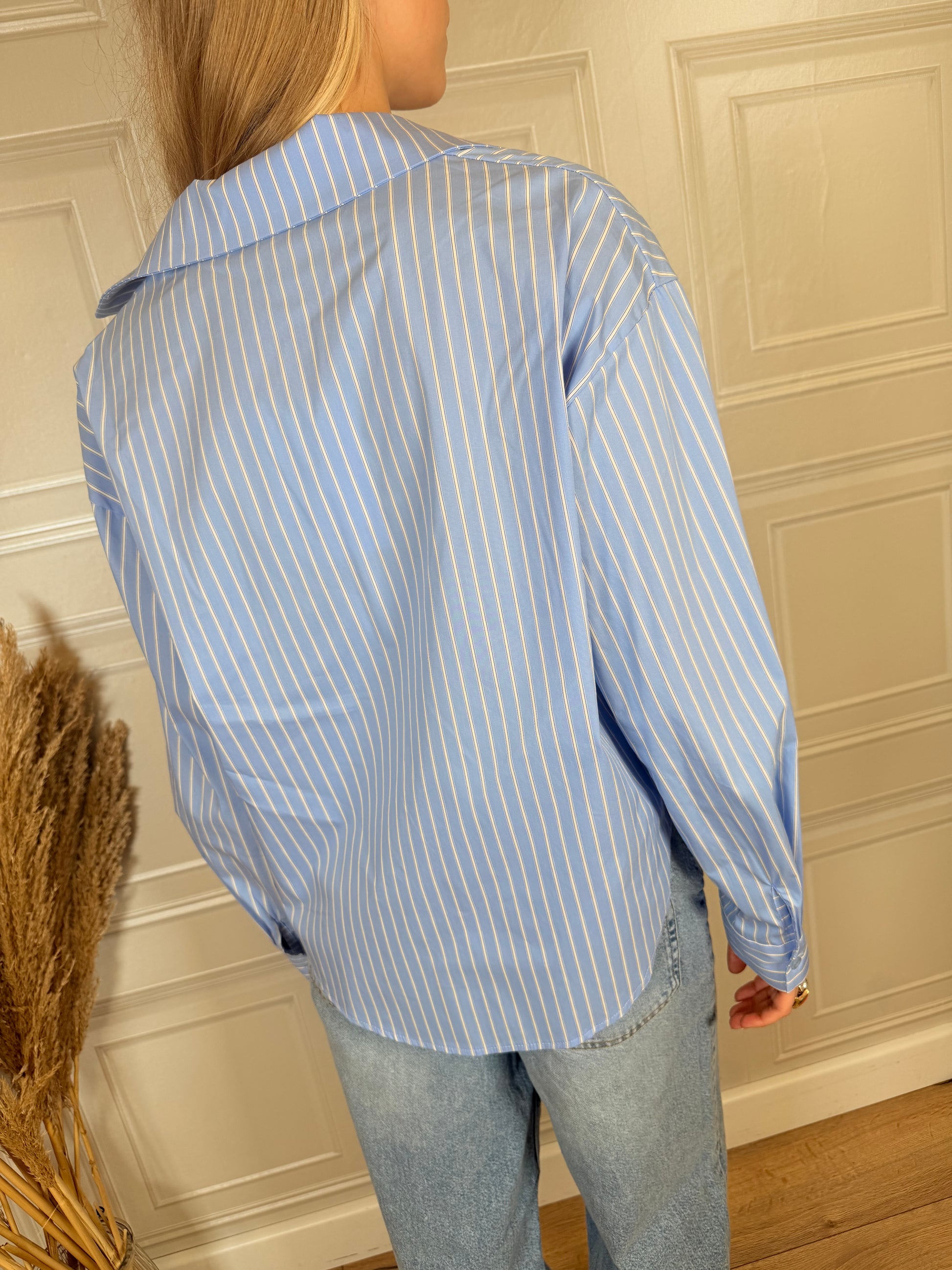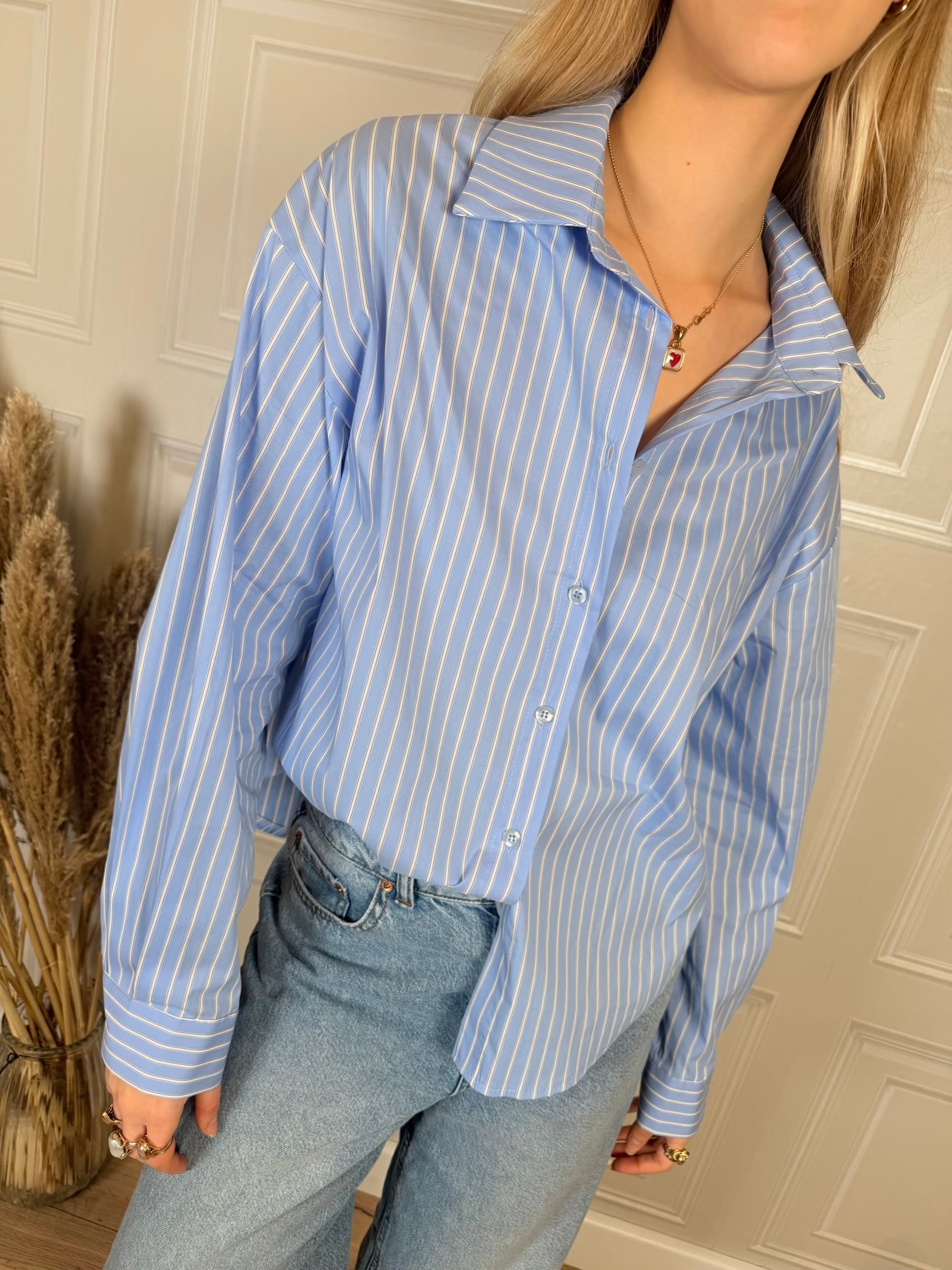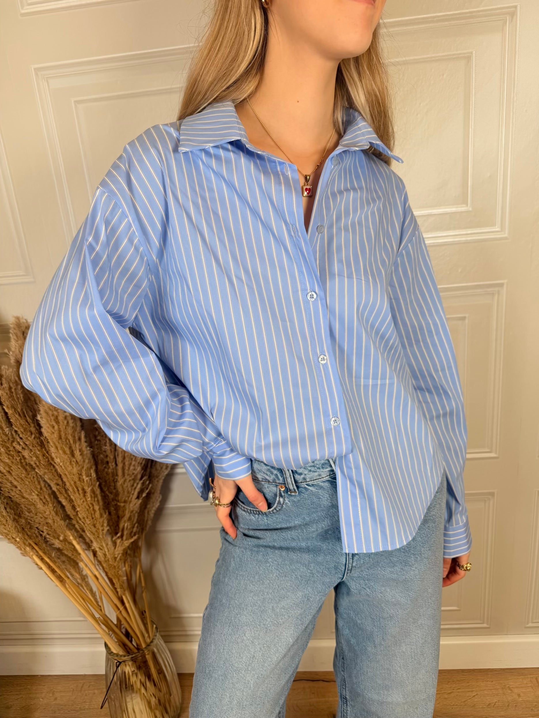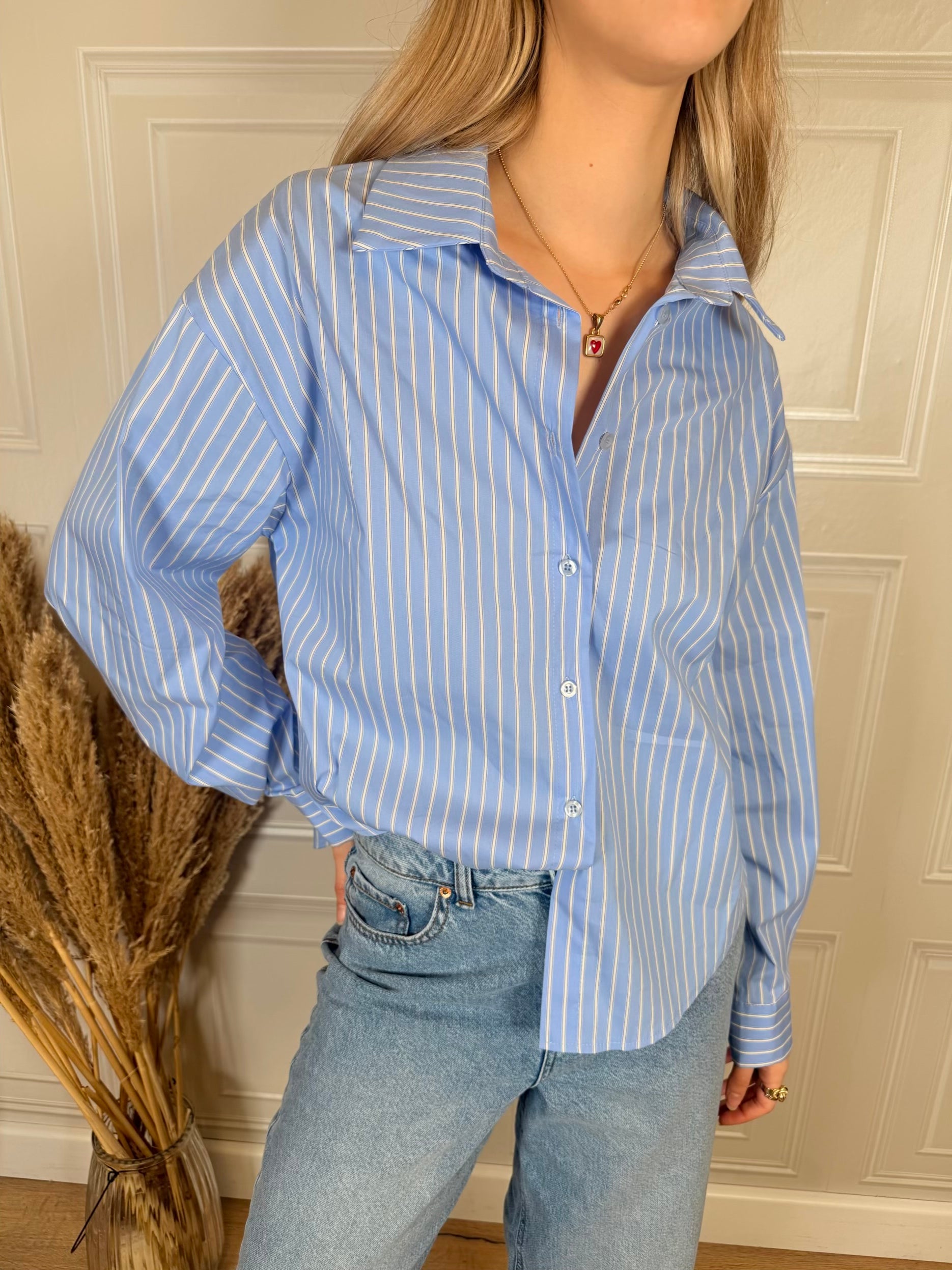 Camicia con fantasia a righe. Modello leggermente morbido con colletto classico e chiusura con bottoni.