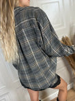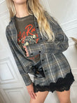 Camicia check con pizzo sul fondo. Chiusura con bottoncini. Lunghezza da spalla: 70cm circa