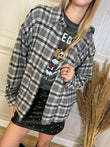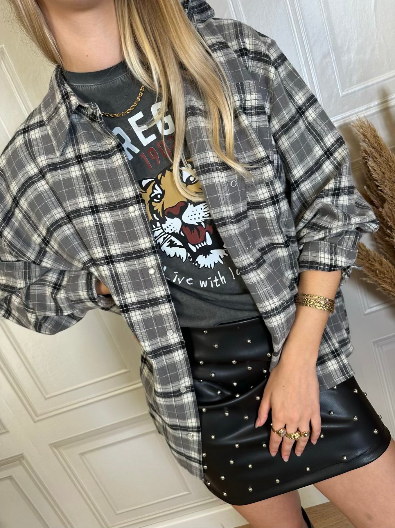 Camicia Check in flanella con stampa sul retro. Chiusura con bottoncini a pressione in metallo.
