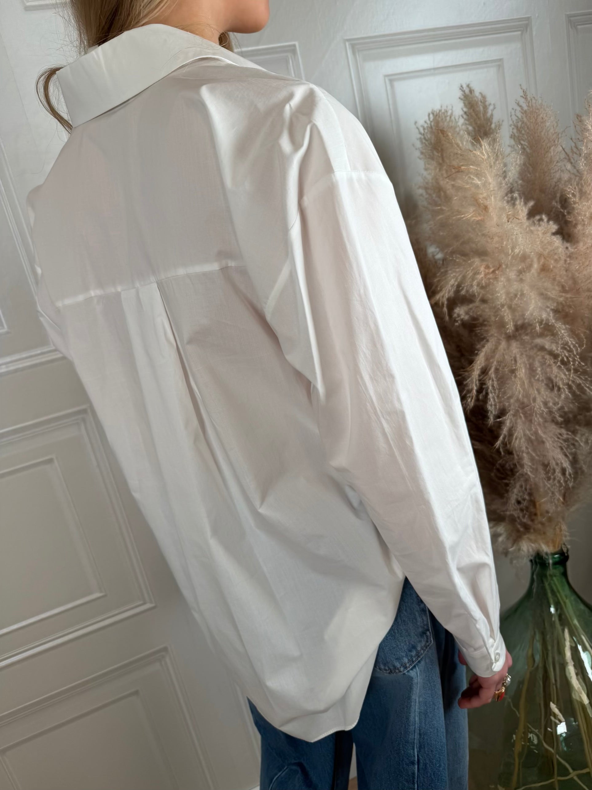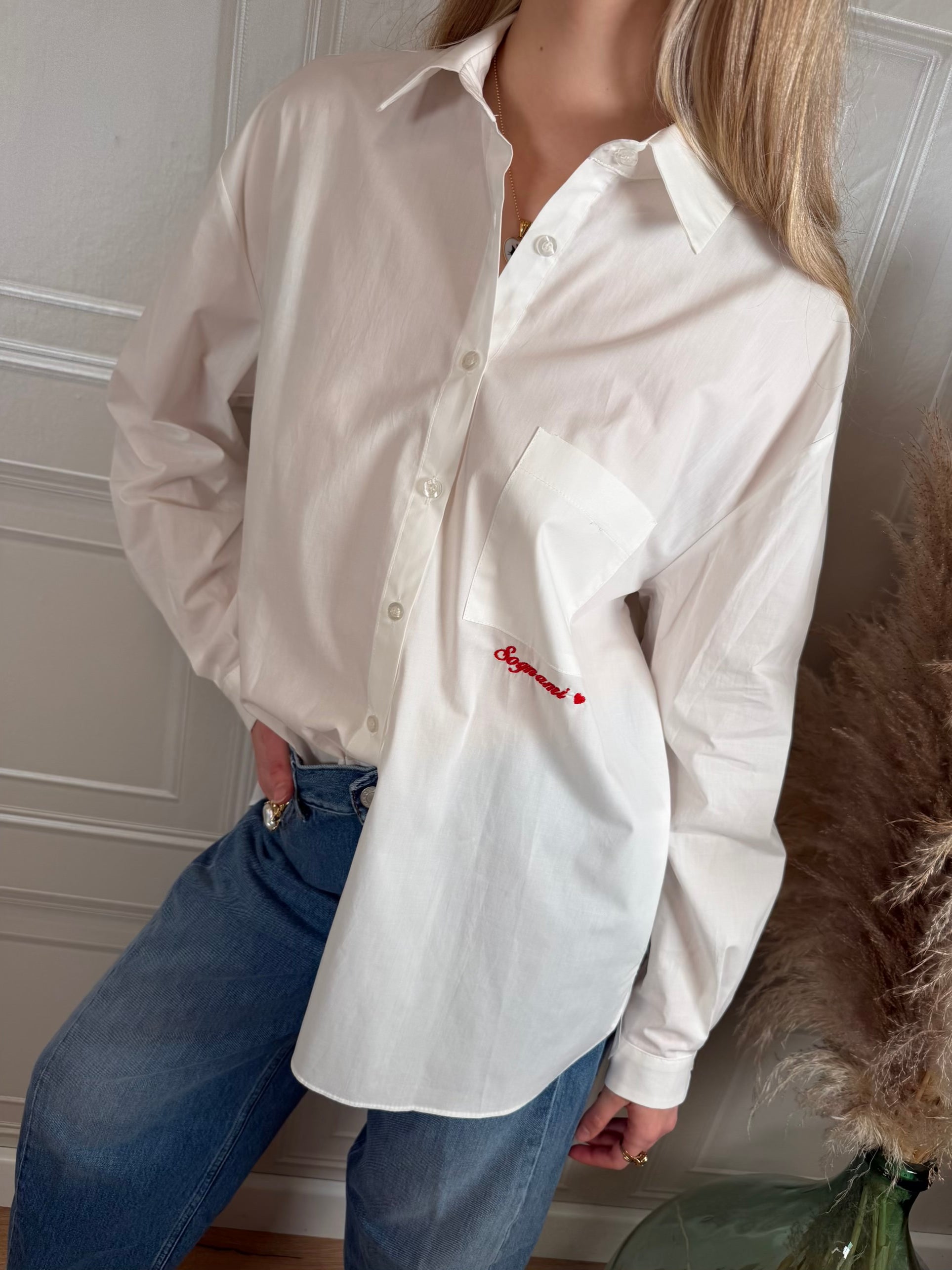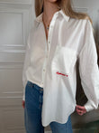 Camicia bianca con taschino e ricamo sul fronte.