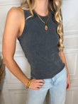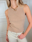 Canotta a costine marmorizzata modello con scollo vogatore.