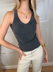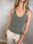 Canotta a costine marmorizzata modello con scollo a V.