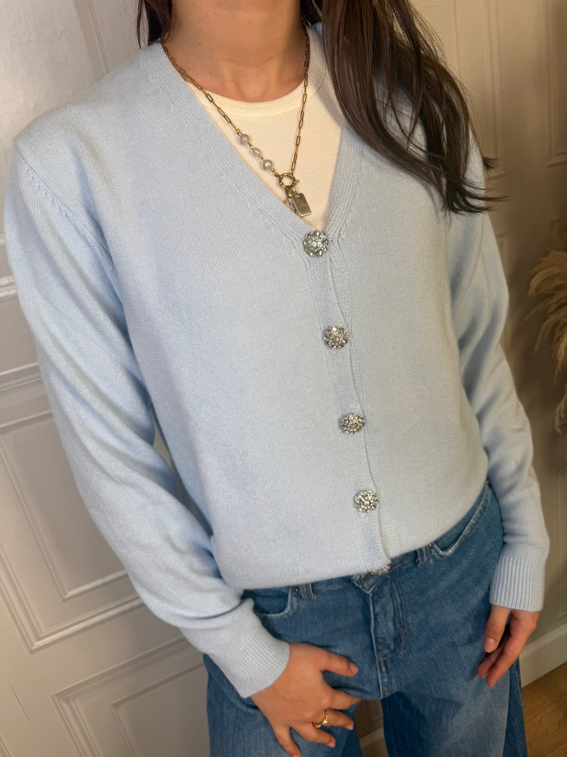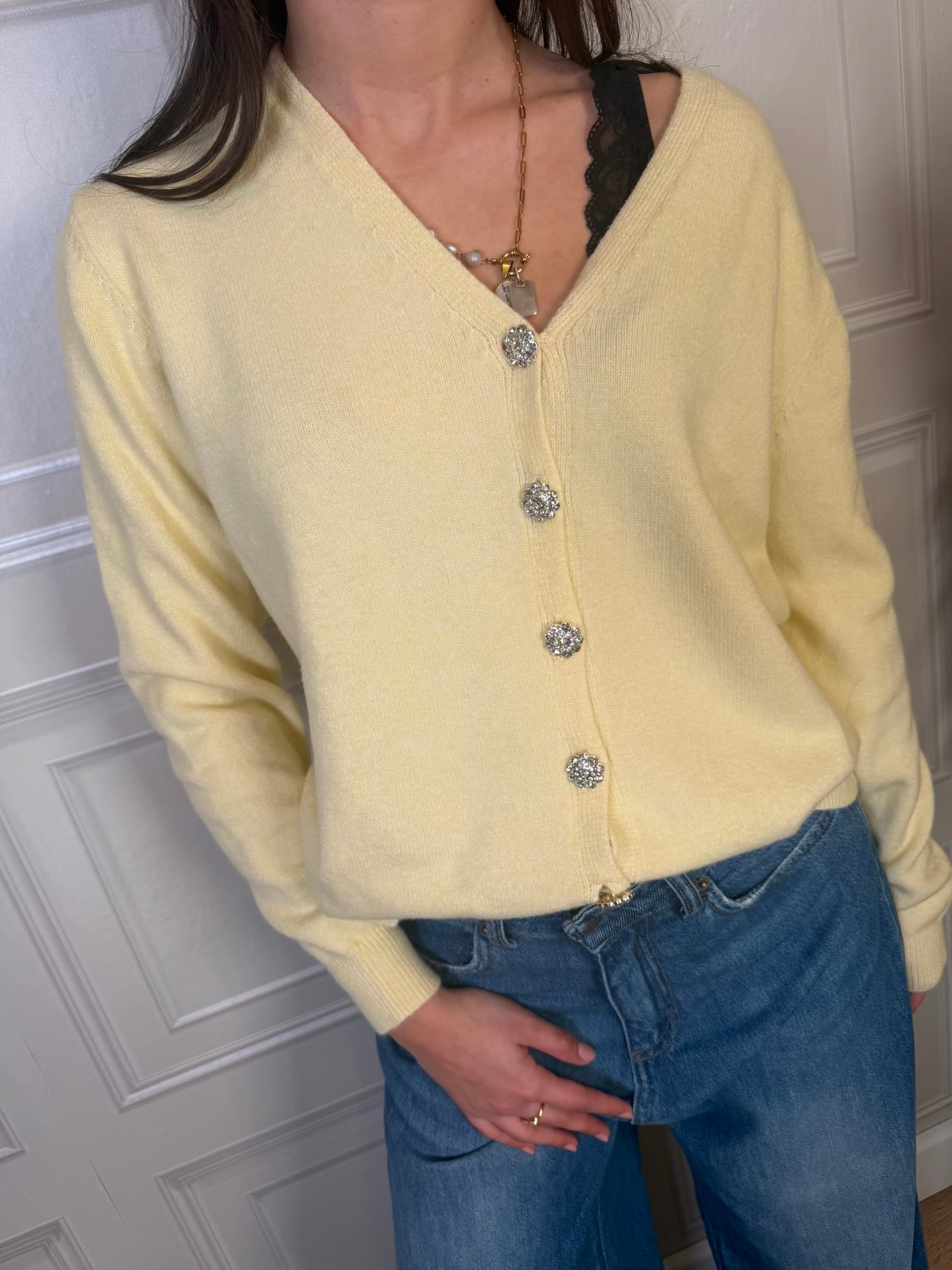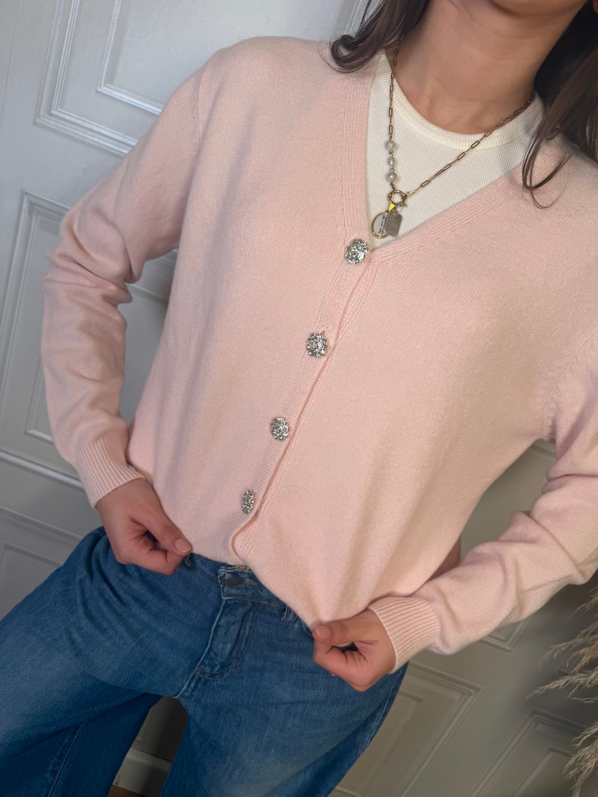 Cardigan in viscosa con bottoni gioiello, manica lunga a fit regolare.