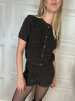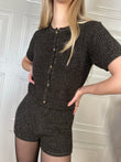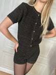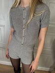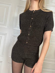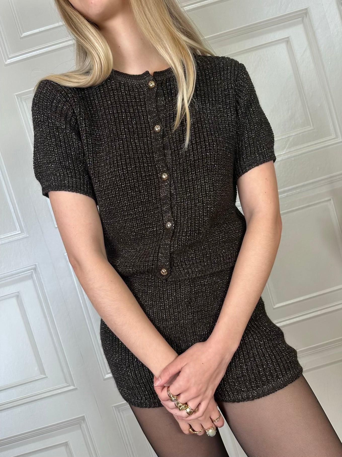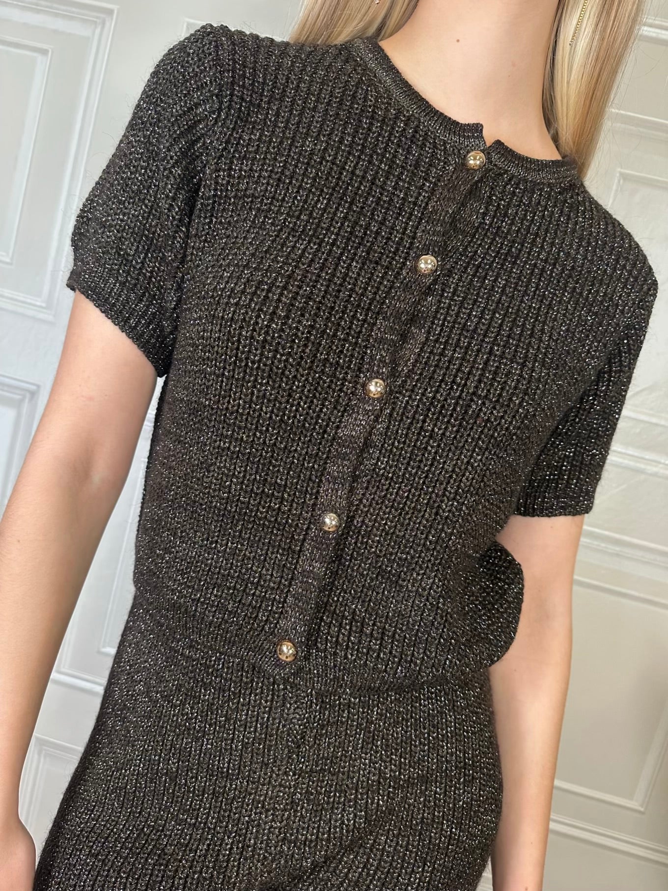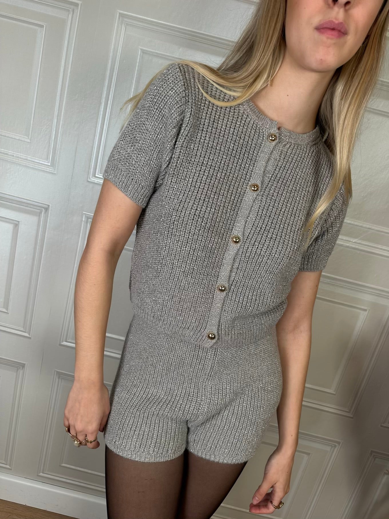 Cardigan in maglia lurex. Modello a mezza manica. Chiusura con bottoncini sul fronte.