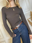Maglia a girocollo cashmere. Modello fit aderente e manica lunga.