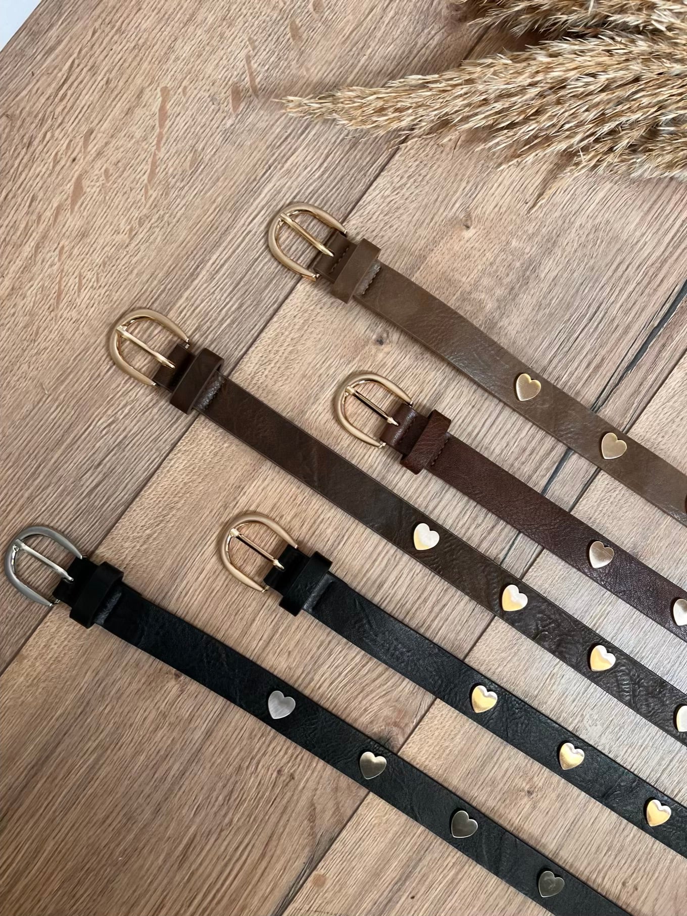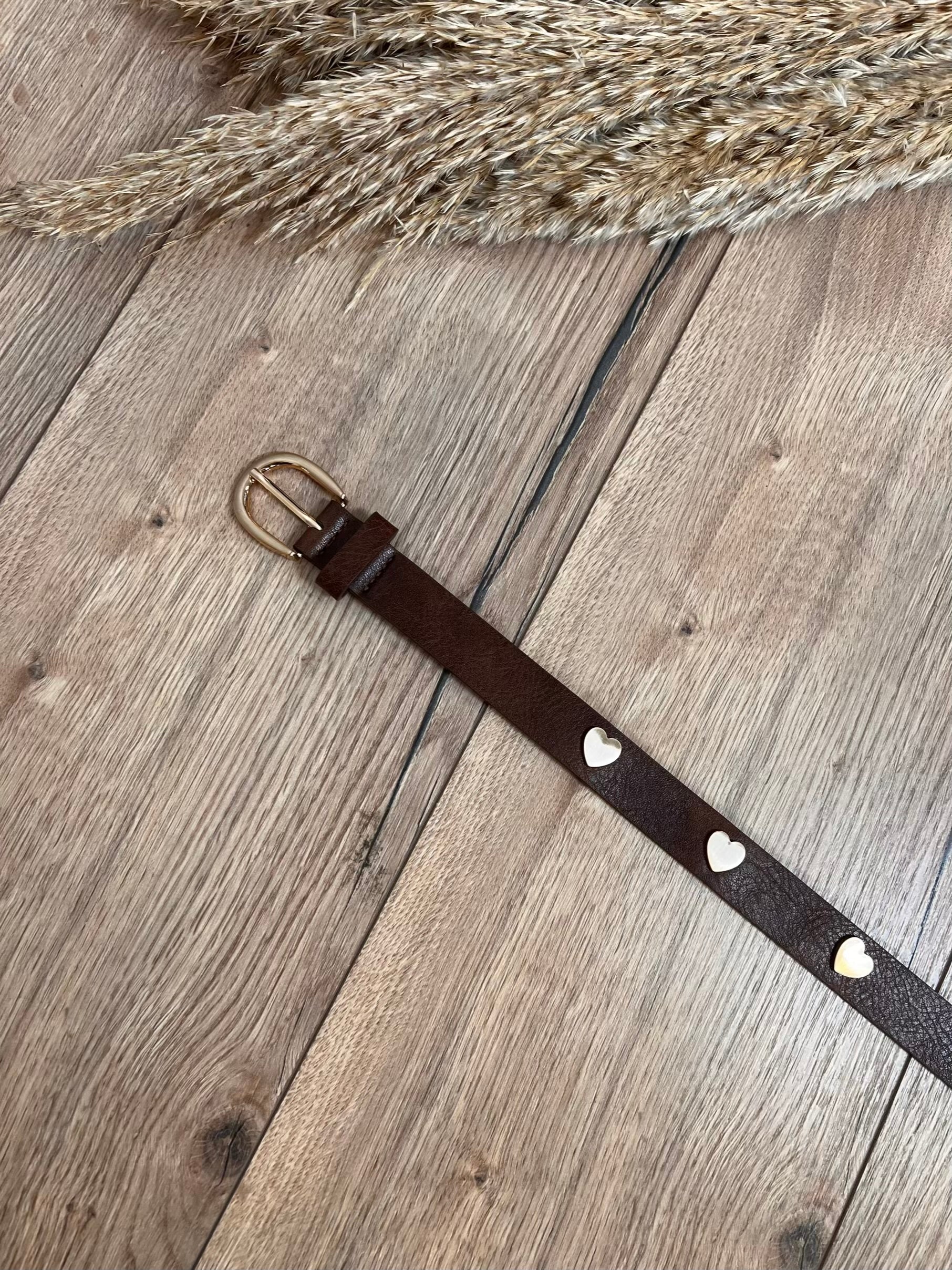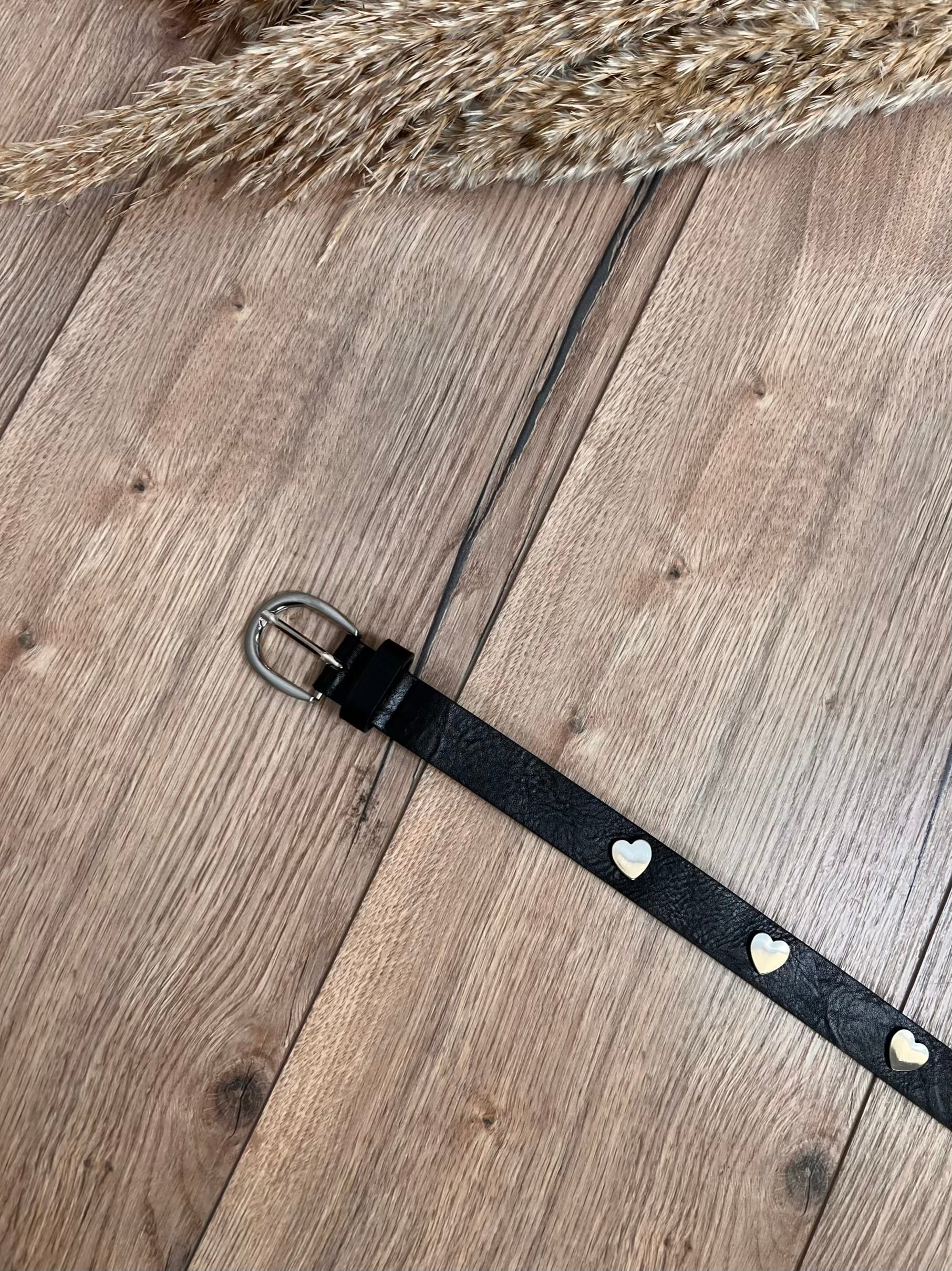 Cintura in ecopelle con fibbia arrotondata e dettaglio cuoricini.