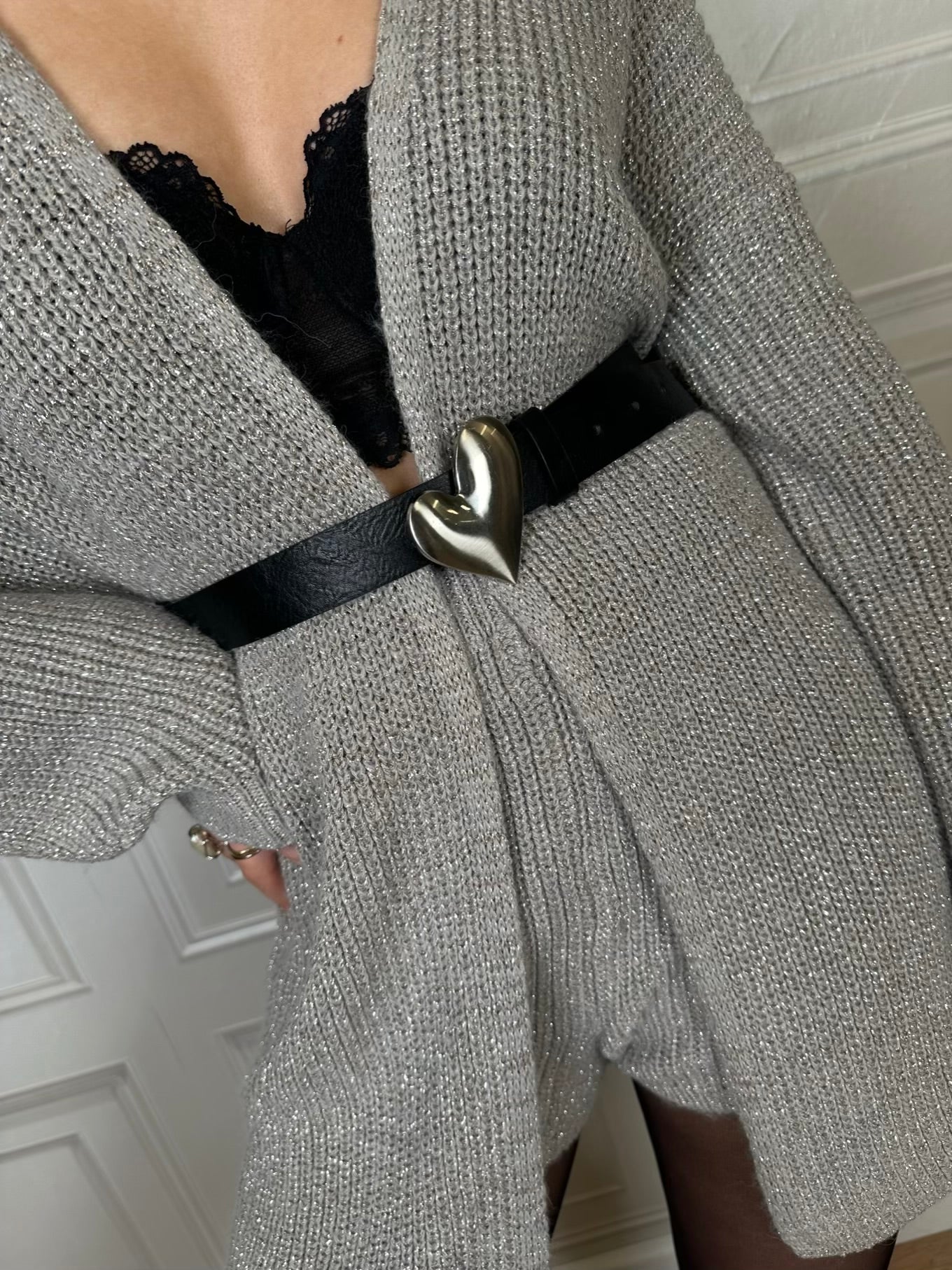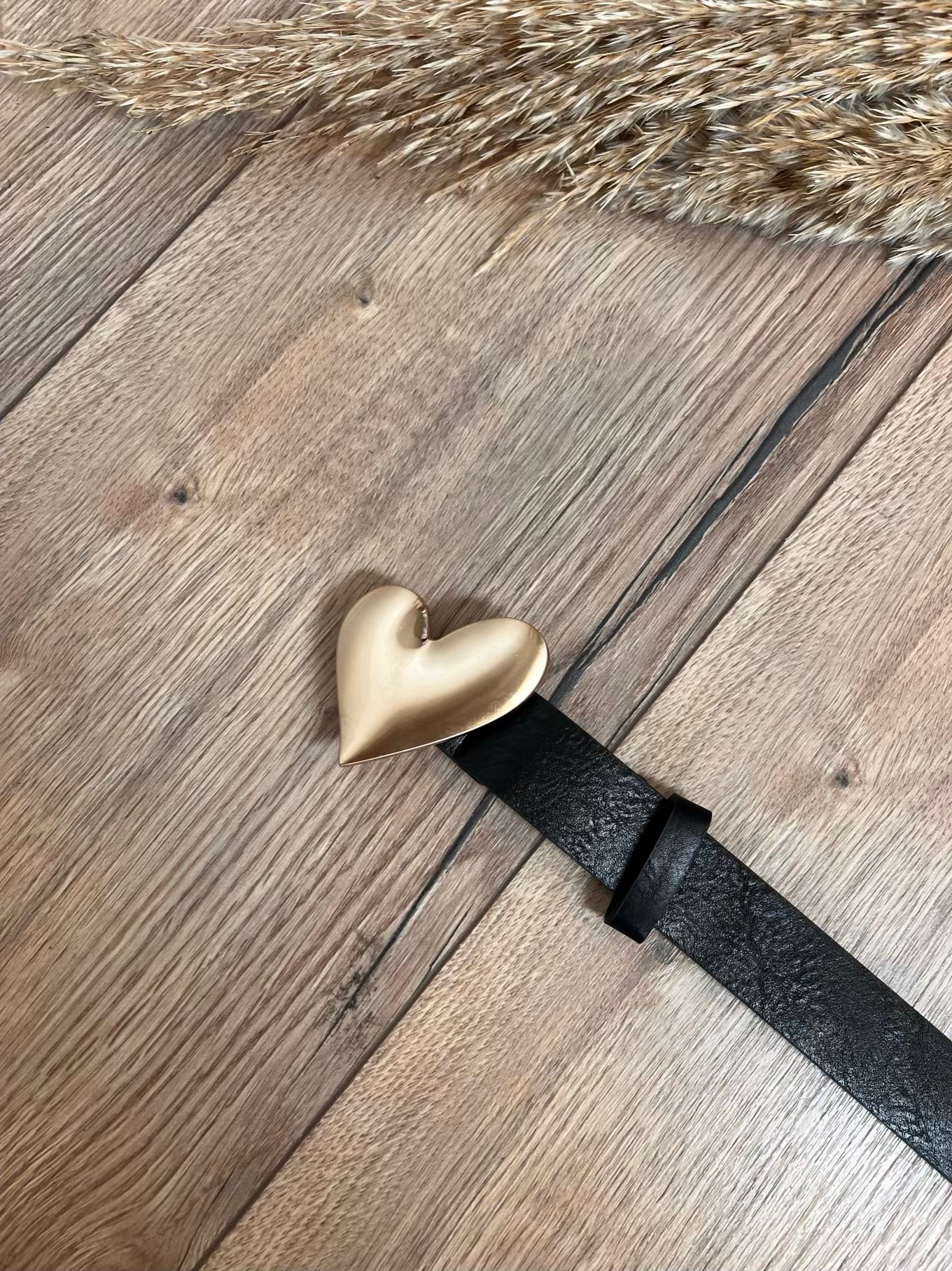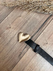 Cintura in ecopelle con fibbia a forma di cuore in metallo color oro.