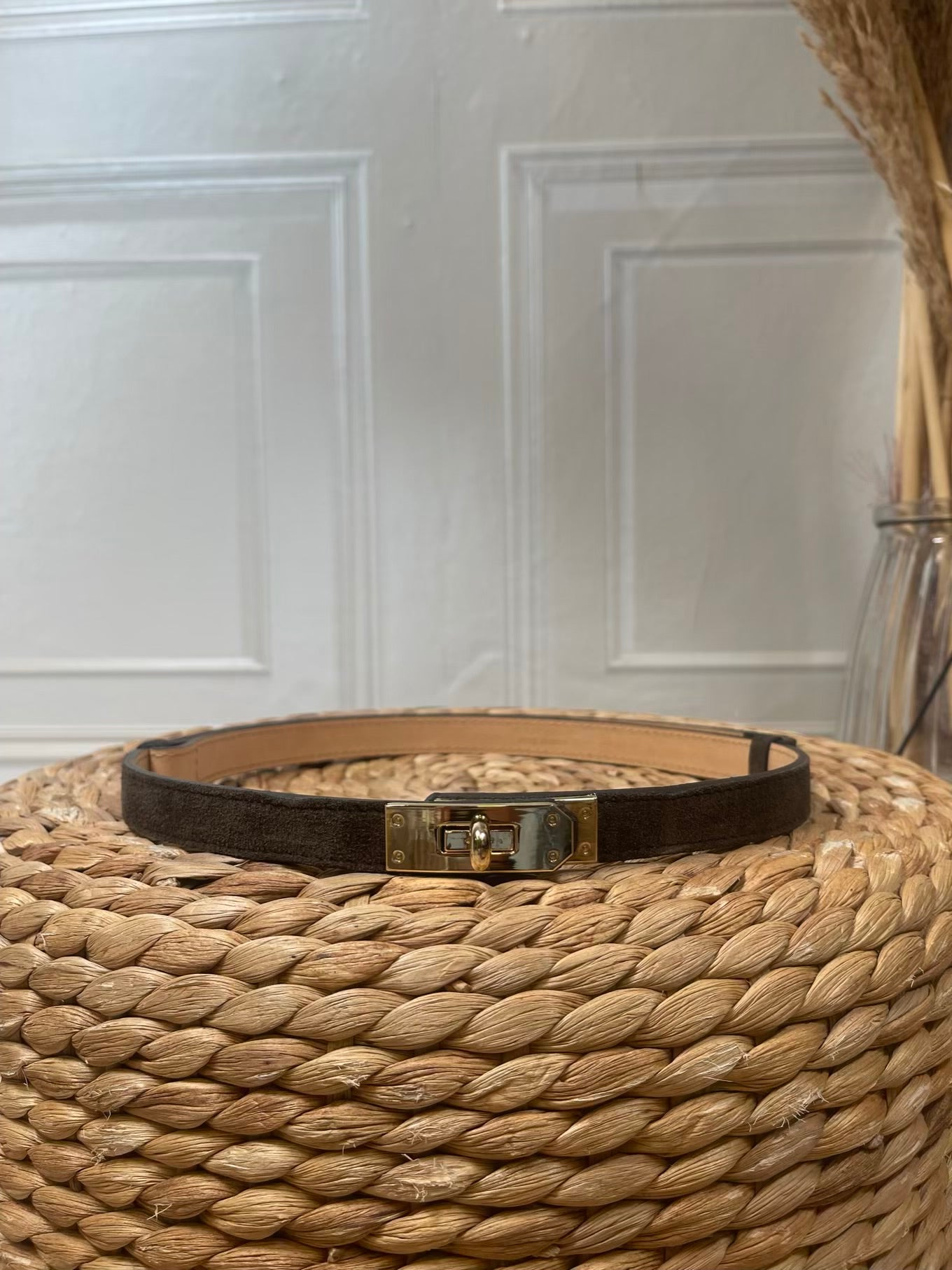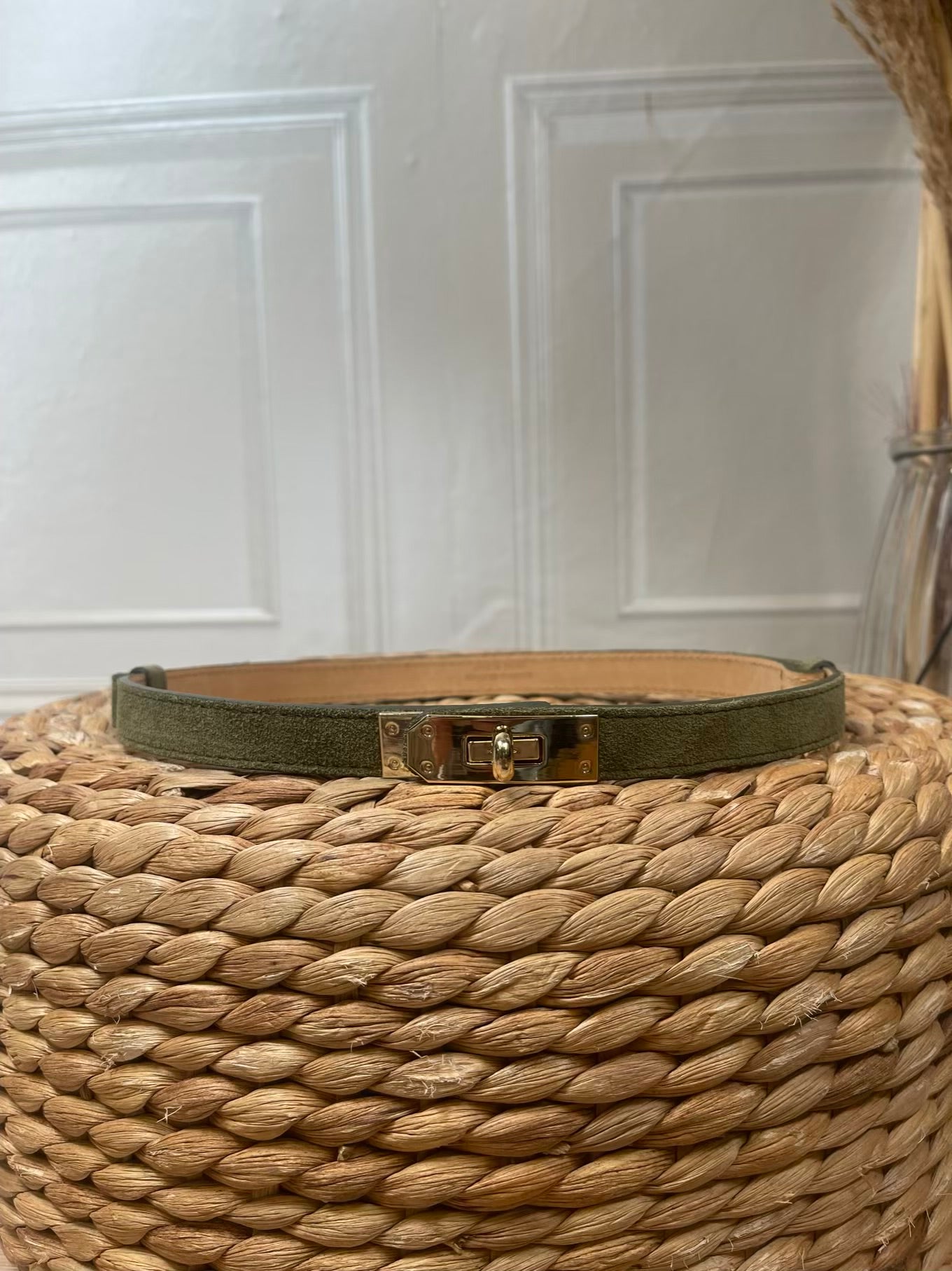 Cintura realizzata a mano in vera pelle in suede. Made in Italy. Misura regolabile da 60 a 100 cm larghezza spessore 18 mm.